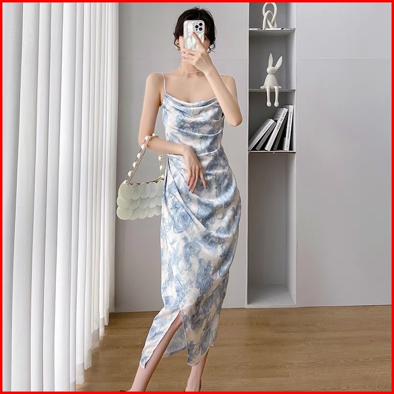 Emita Bloom Baju Dress Floral Gaun Pantai Wanita Kekinian Terbaru 2025 Casual Dress Midi Dress Motif Bunga Tanpa Lengan