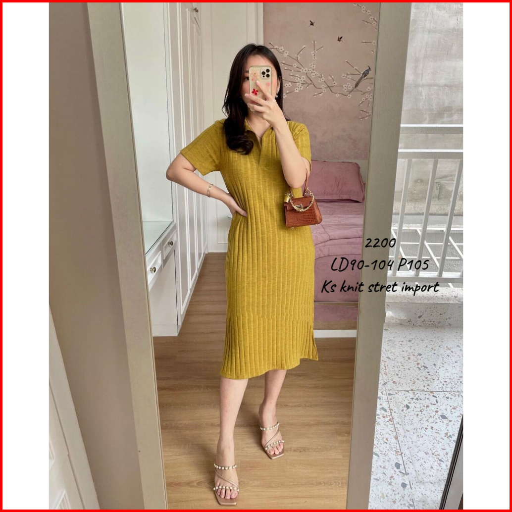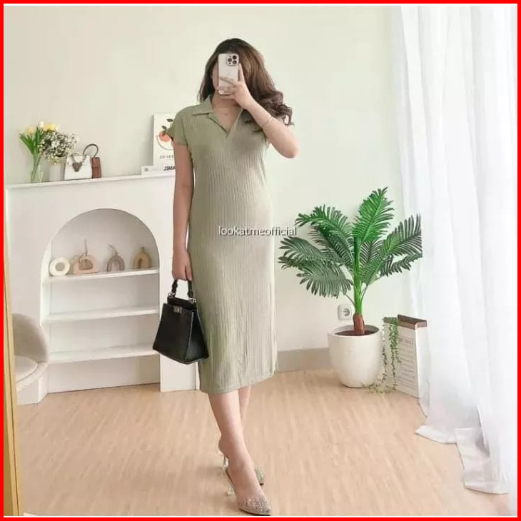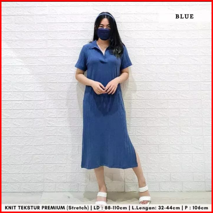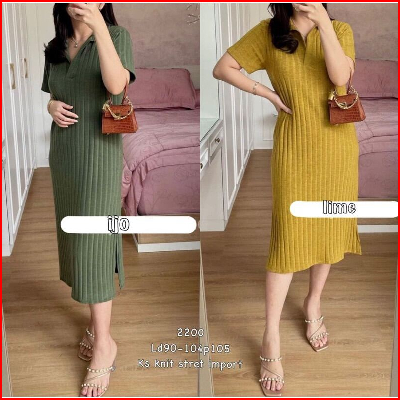 Matilda Knit Slit Dress Cny Polos Rib Rajut Premium Dress Kerah Collar