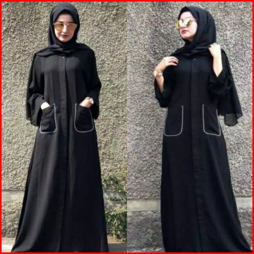 Gallery Abaya Exclusive Dubai Saku Jetblack S-xl