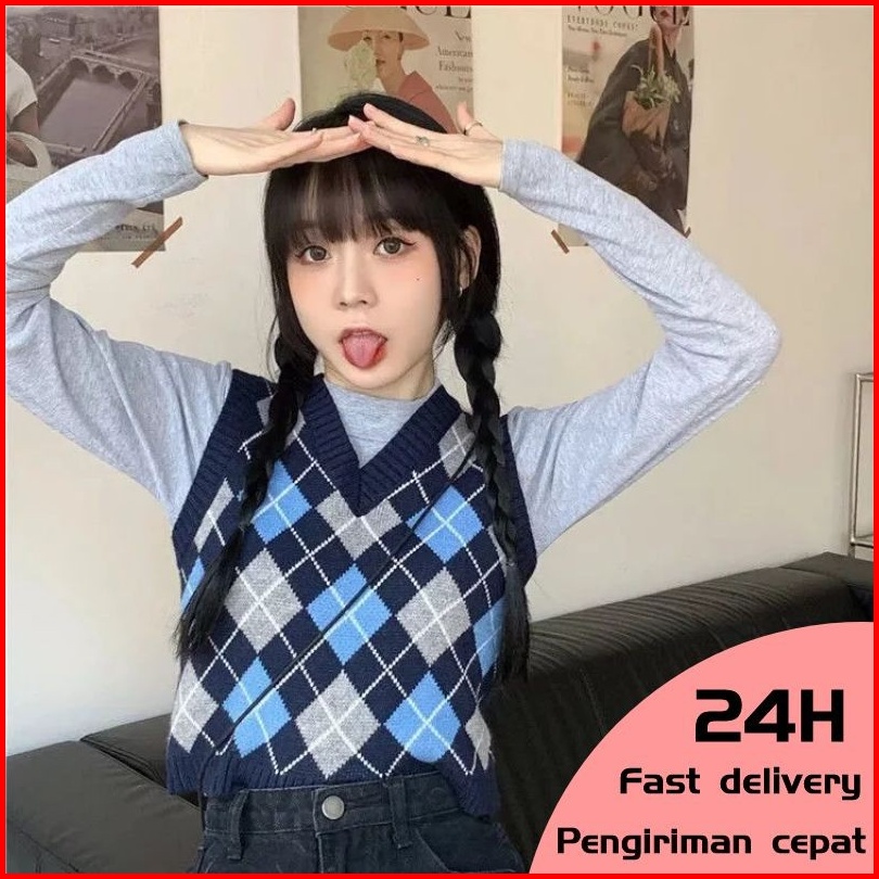 Rompi Rajut Wanita Shadow Korean Akrilik Kotak-kotak