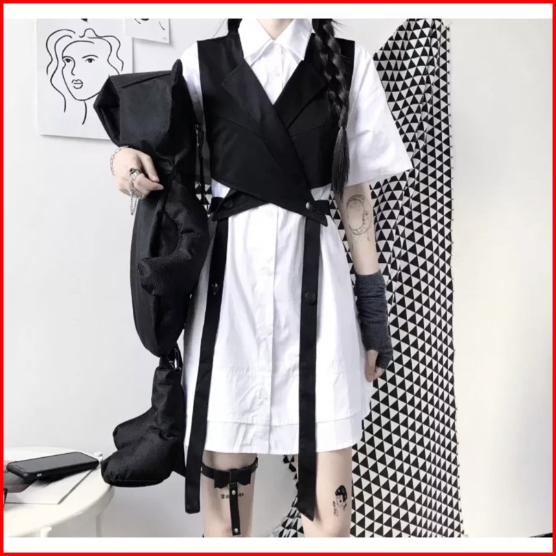 Blazer Atwell Rope Harajuku Rompi Vest Korea Style Outer Tali
