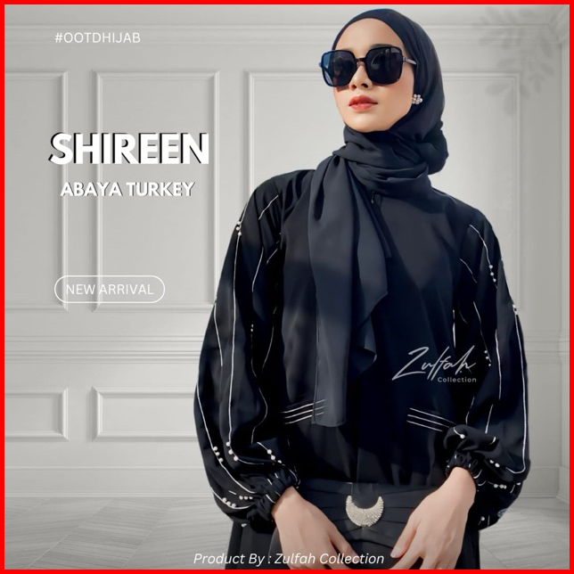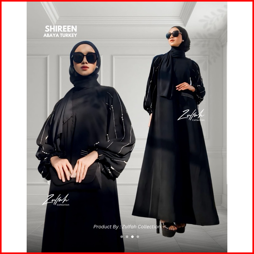 Shiren Abaya Hitam Turkey Gamis Syari Jetblack Kombinasi List Manik Putih Zulfah Collection