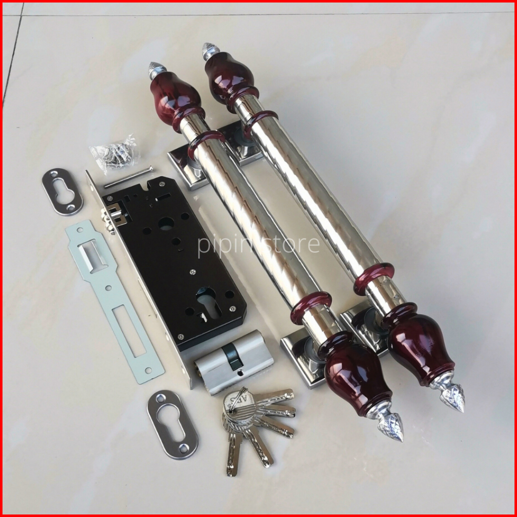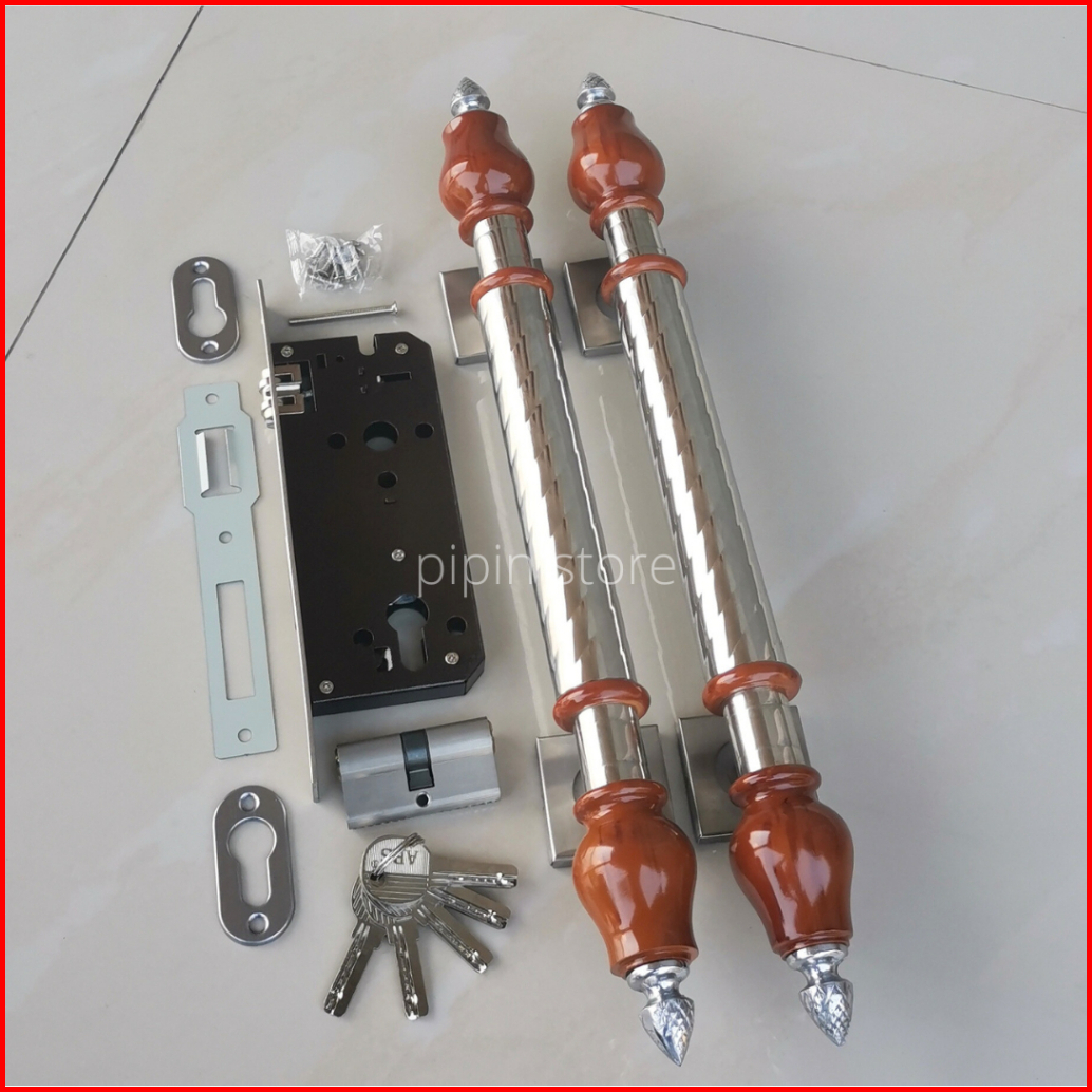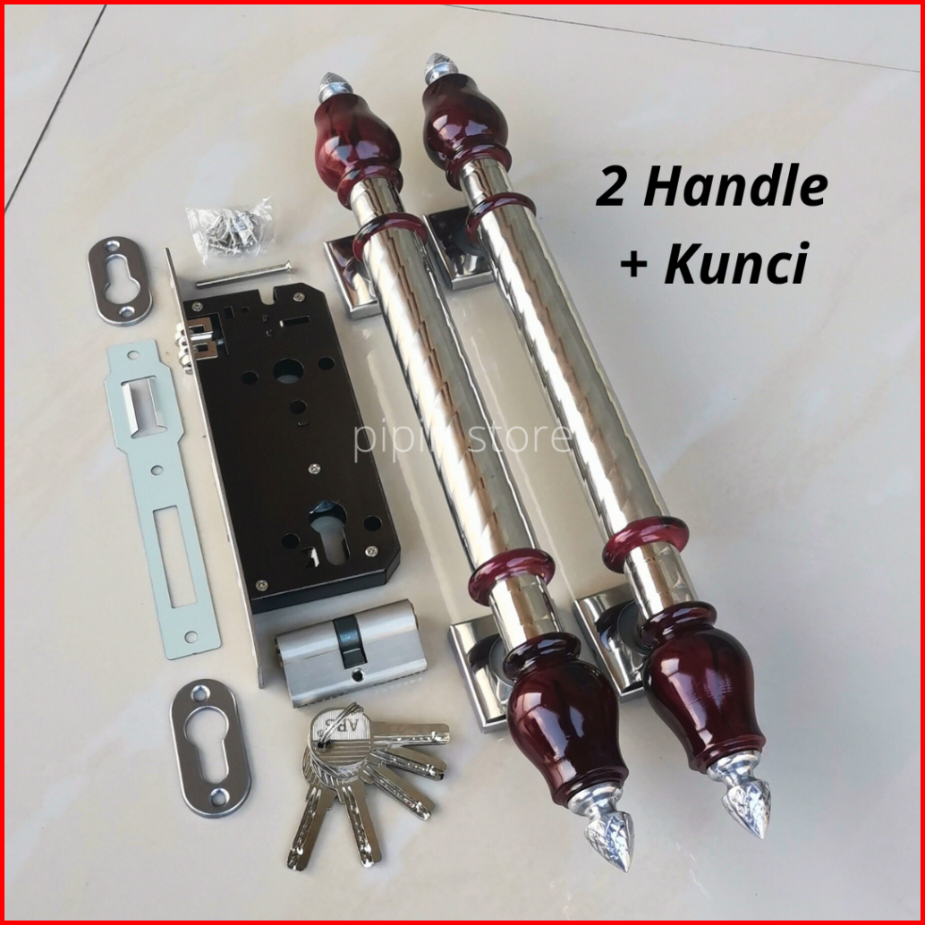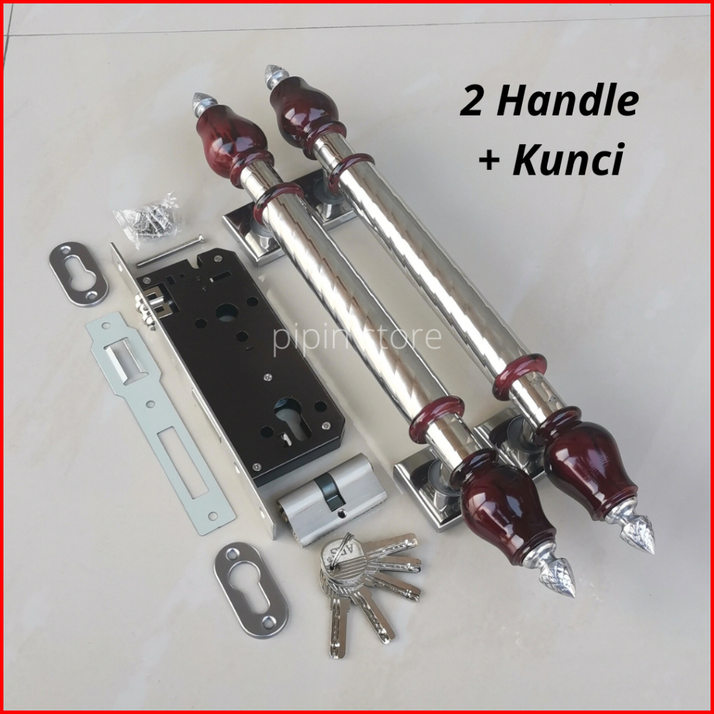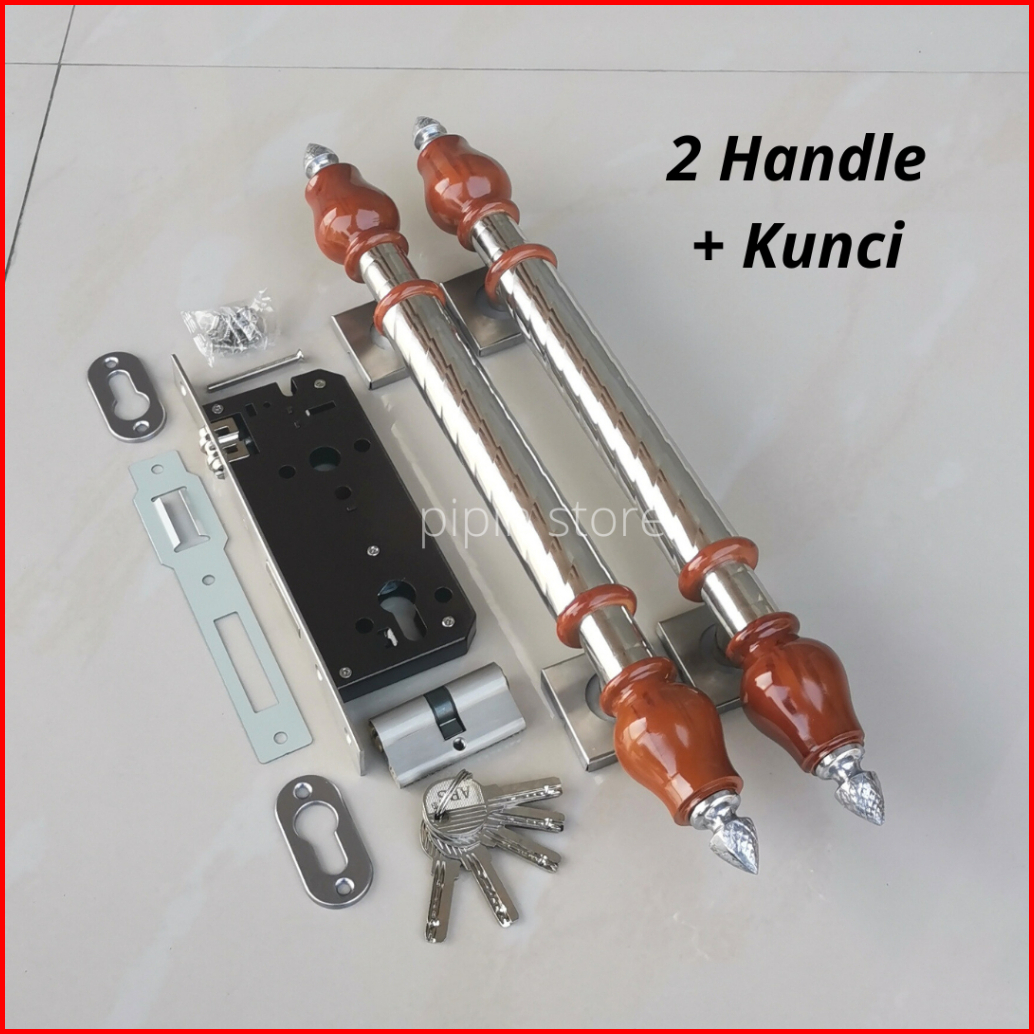 Handle Pintu Rumah 45cm Kunci Set Gagang Pintu Kayu Jati Tarikan Pintu Kupu Tarung Pegangan Pintu Minimalis