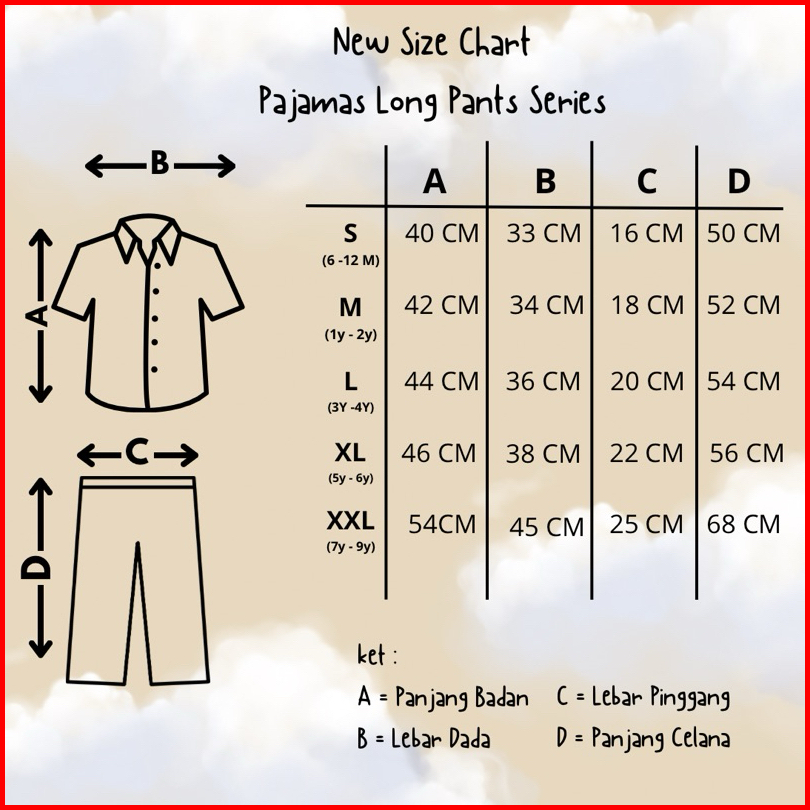 Pajamas Premium Murah Long Pant Piyama Anak Unisex