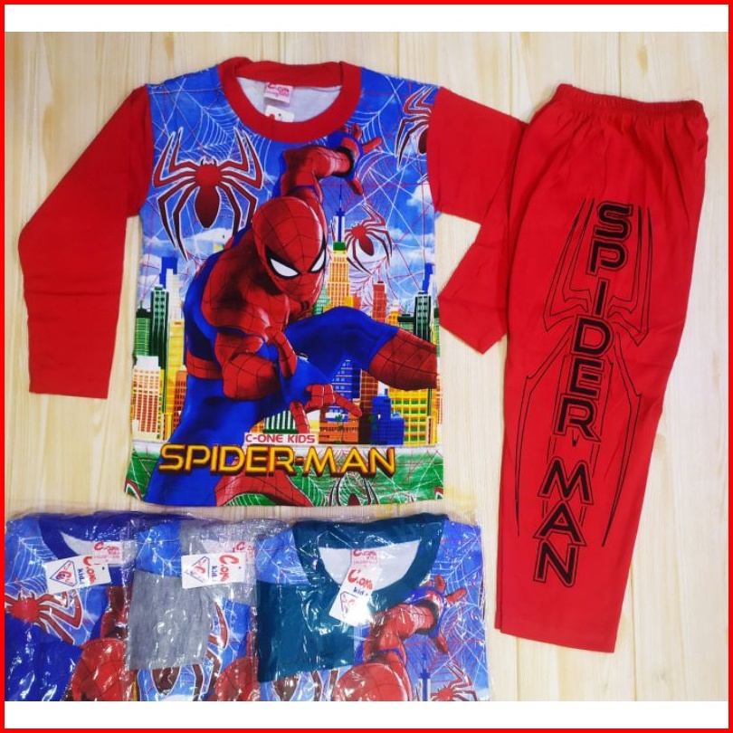 Setelan Anak Boboiboy Ultraman Spiderman Premium Full Print -baju Tidur Anak 2-10 Thn -piyama Anak Panjang Premium