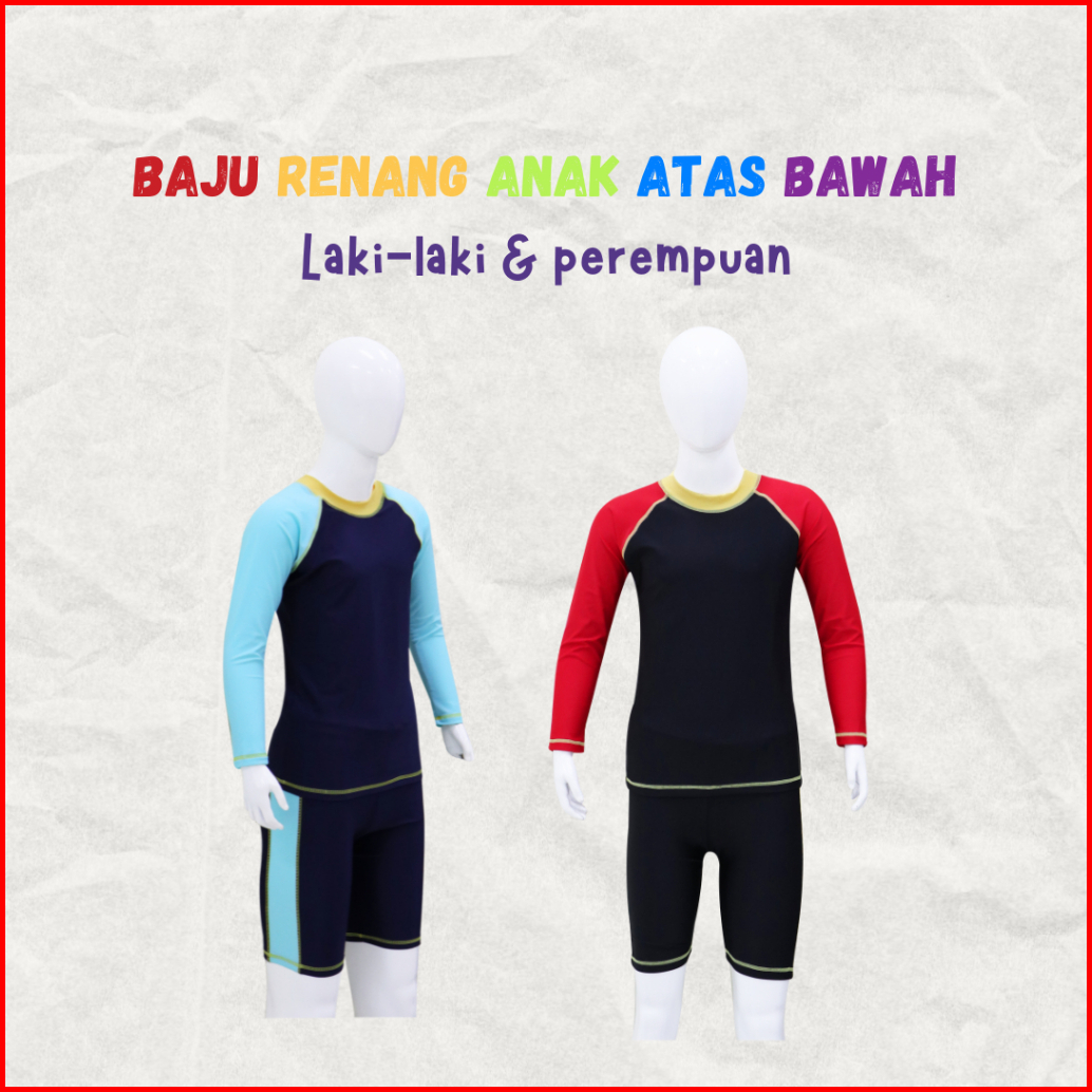 Baru Setelan Baju Renang Pria Laki-laki Perempuan Anak Remaja Tangan Panjang Polos Model Terbaru