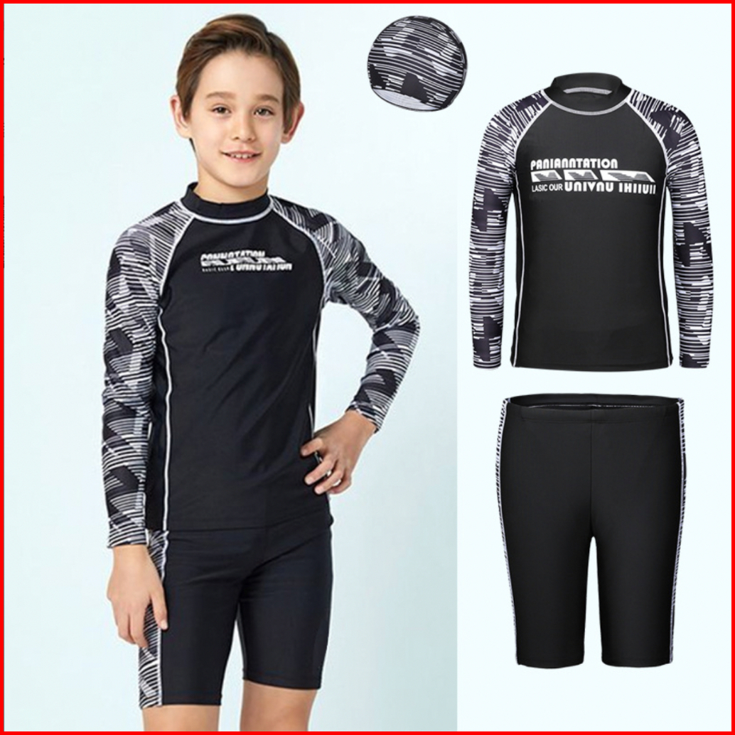 Swimming Fun - Baju Renang Anak Remaja Abg Surfing Big Boy Swimsuit Beach Wear Black Swimwear