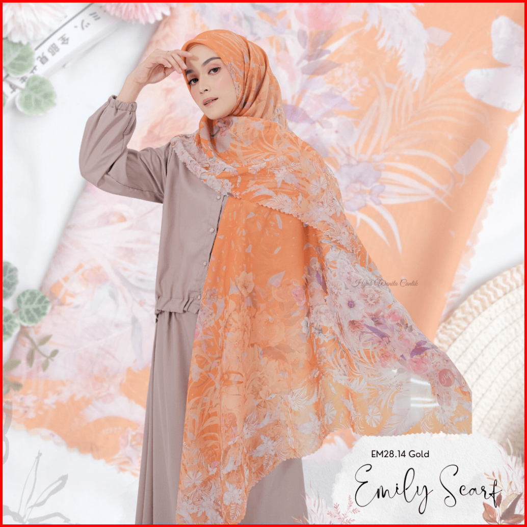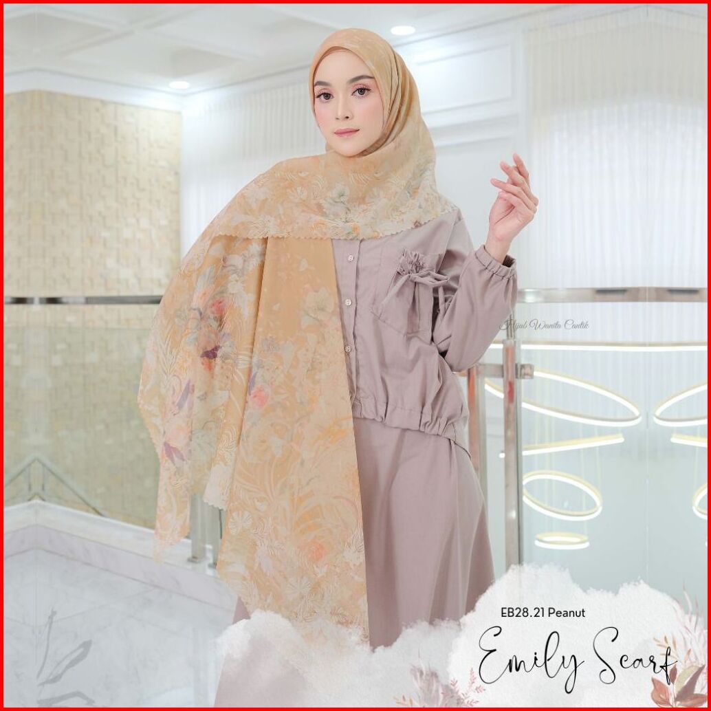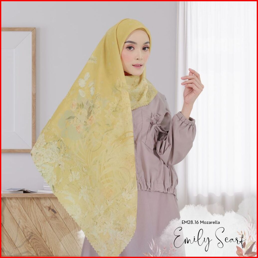 Hira - Hijabwanitacantik - Emily Scarf Polycotton Voal Mozarella Hijab Segi Empat Motif Jilbab Segiempat