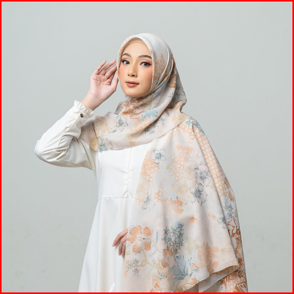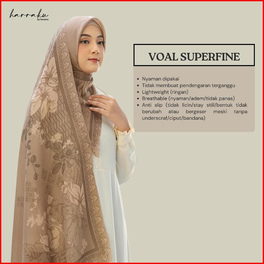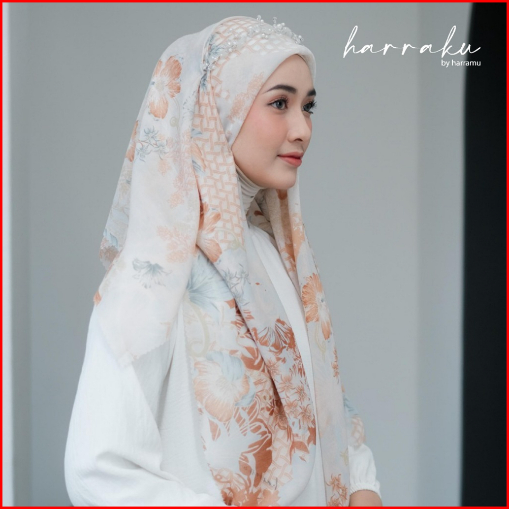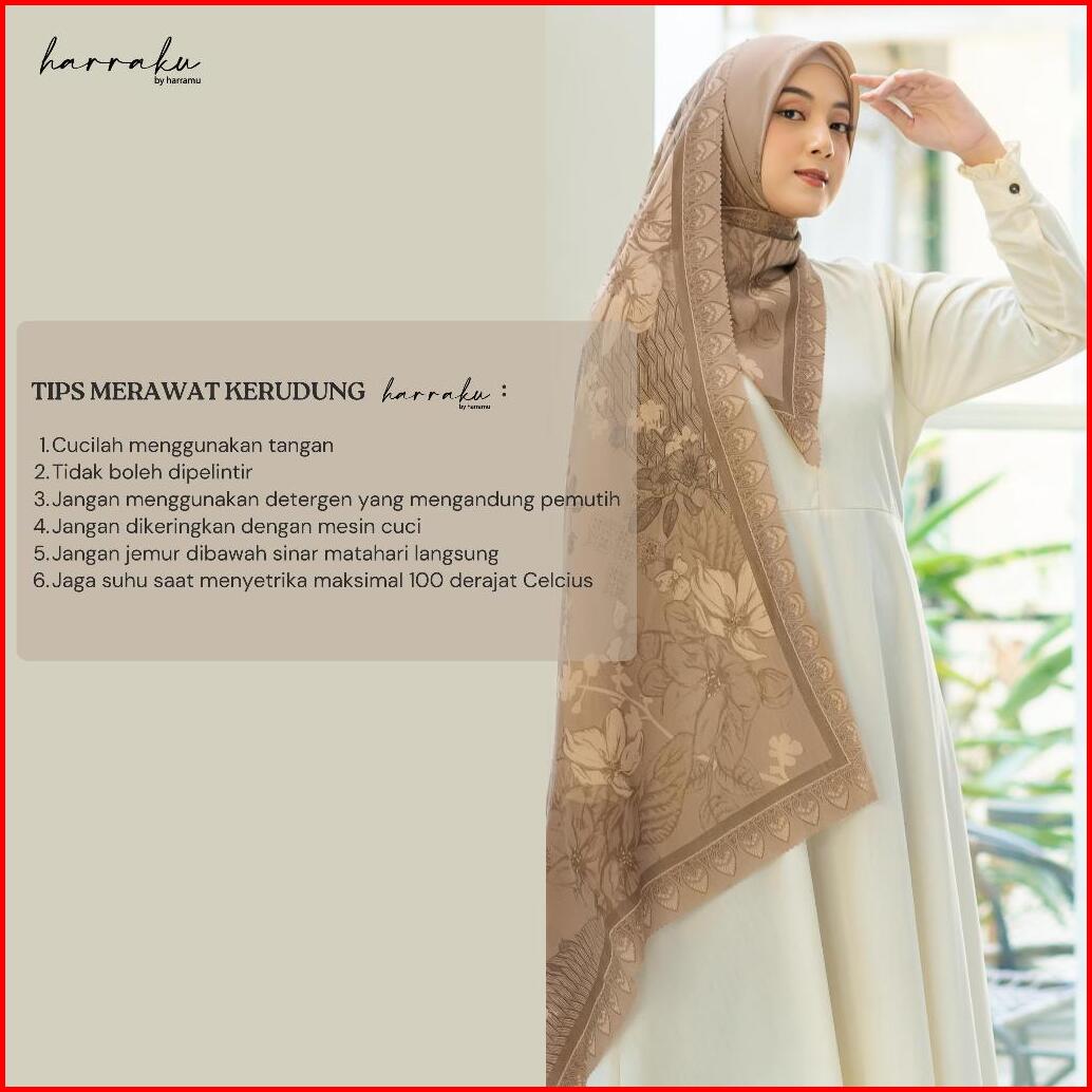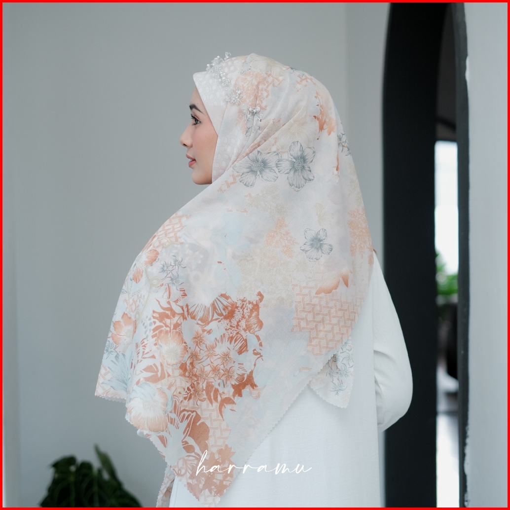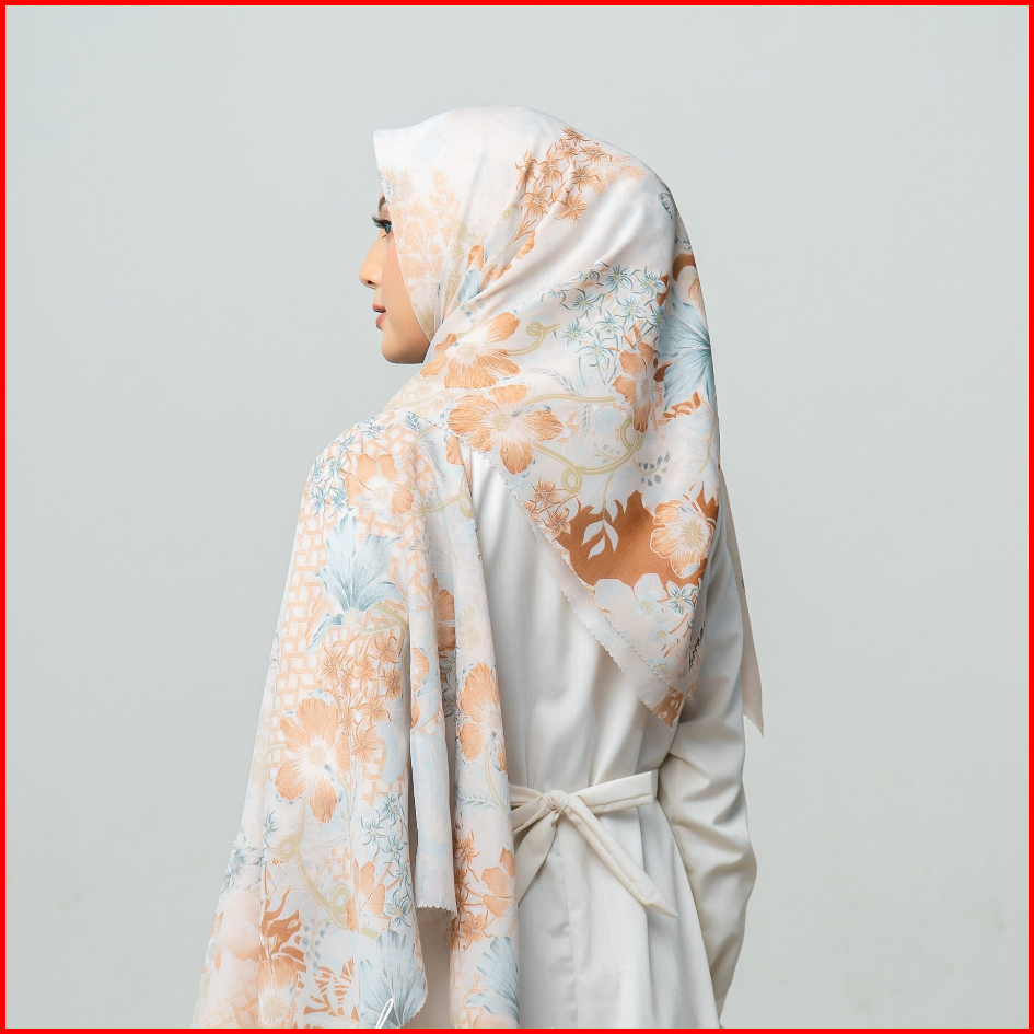 Harraku Hijab Voal Printing Segiempat Motif Magnolia Coklat