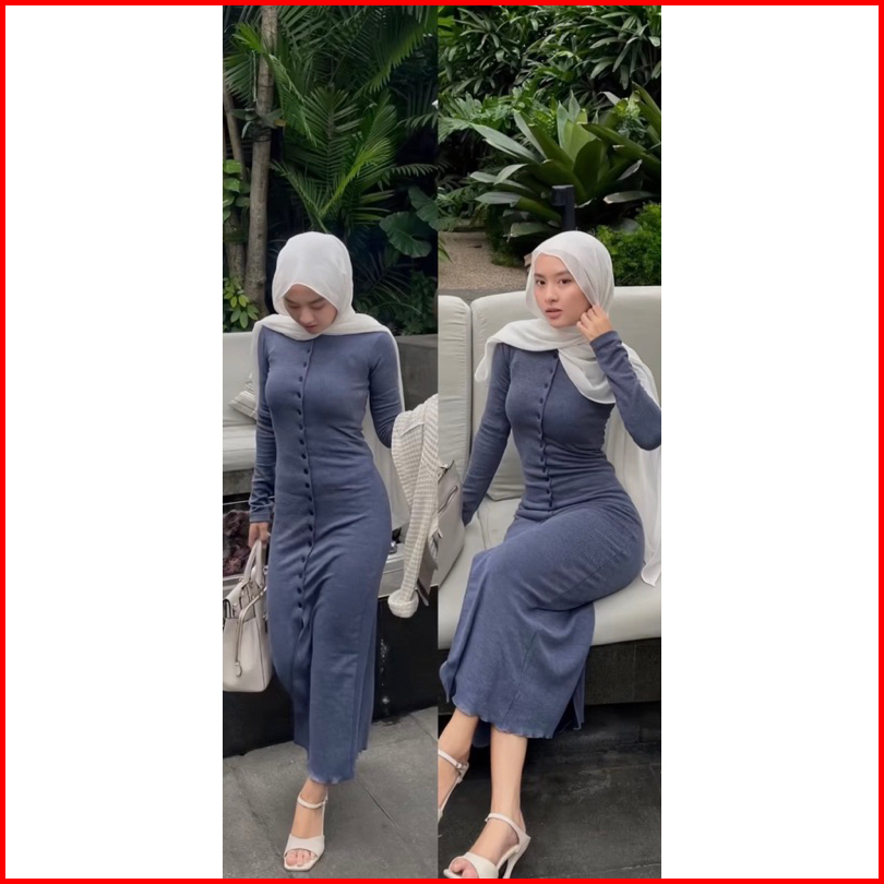 Dress Knit Full Kancing Knit Rib Premium Korean Dress Lengan Panjang Basic Dress Bodycon