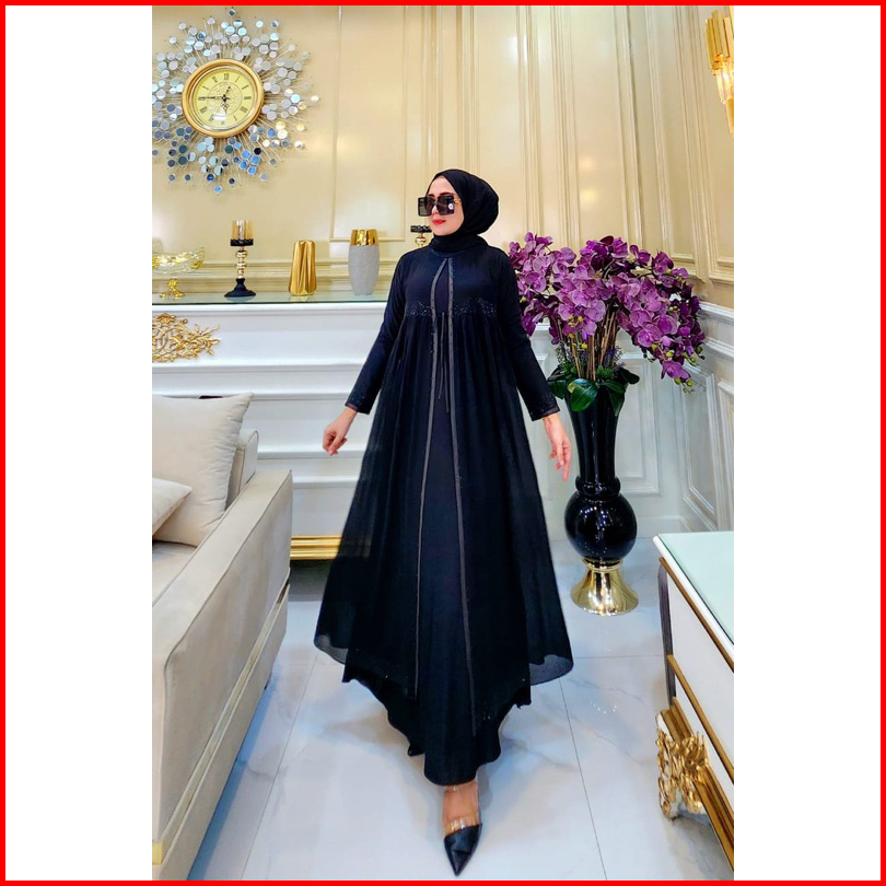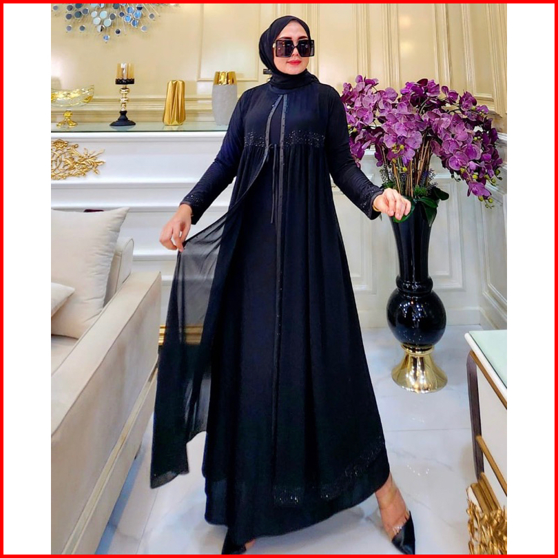 Gamis Abaya Turkey Hitam Dubai 02 Terbaru Payet Swarovski Elegan New Dubai Rsk