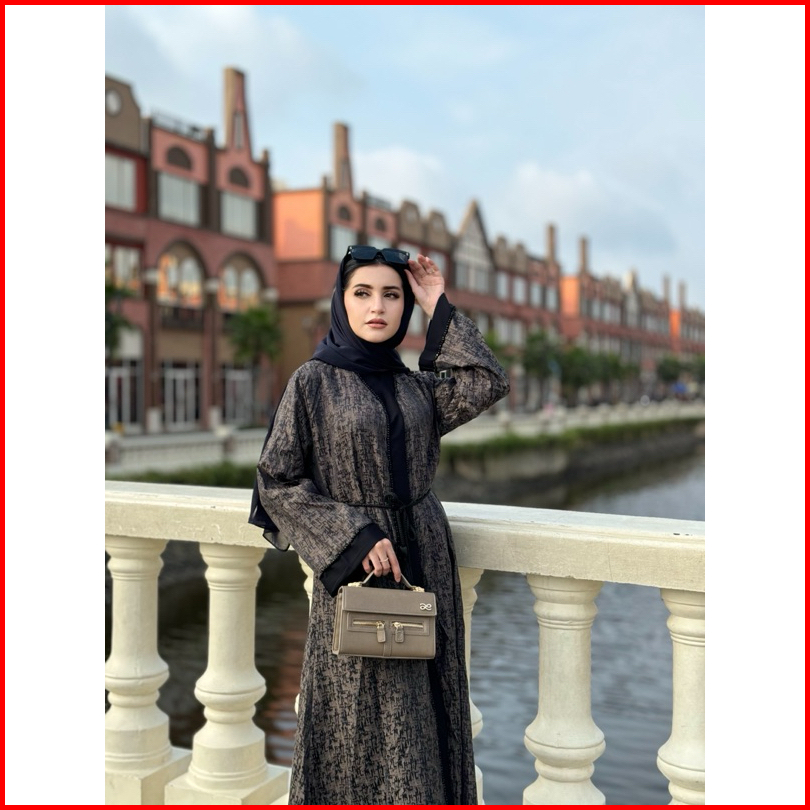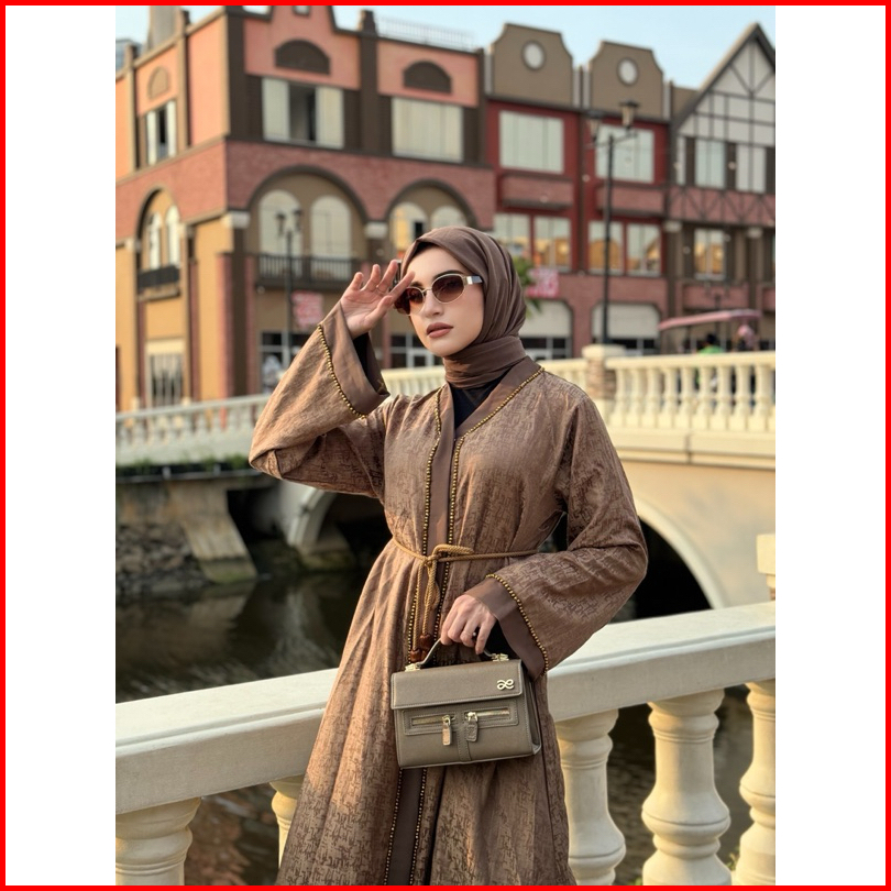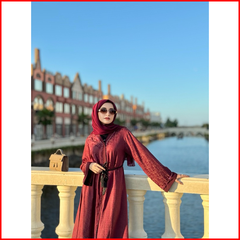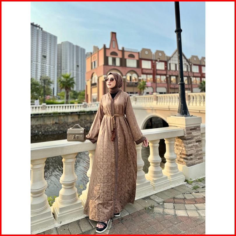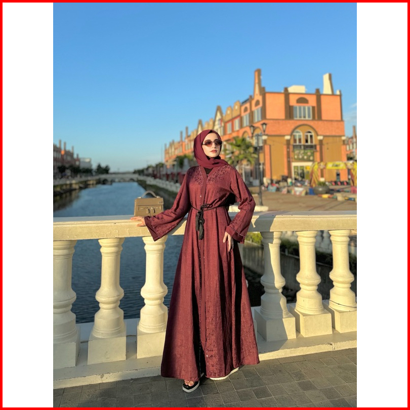 Abaya Ashila Crystal Free Belt Tassel Abaya Pesta