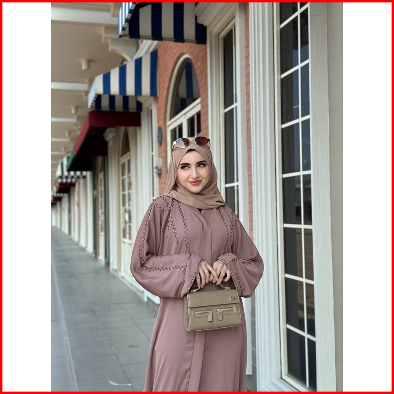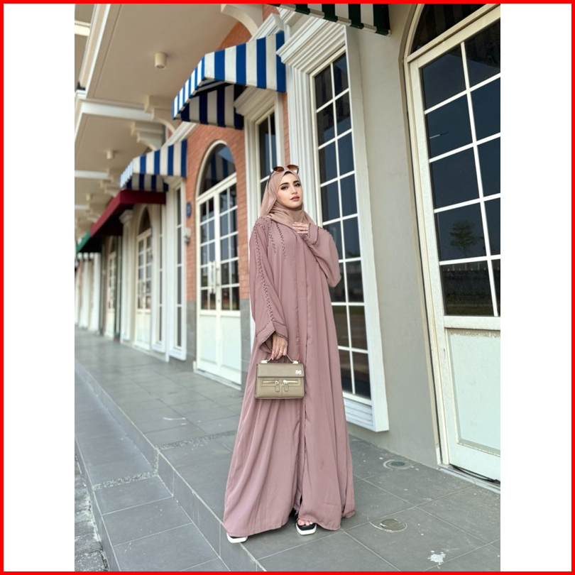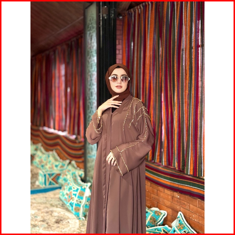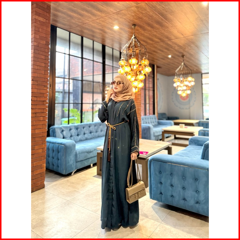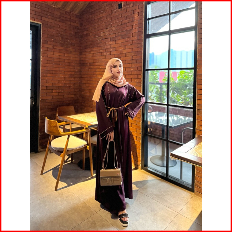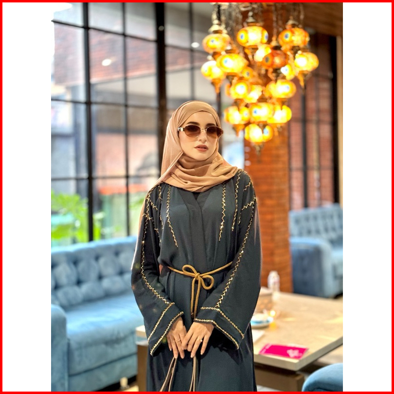 Abaya Gamis Tasya Fursan 2in1 Outer Kekinian Dress Wanita Elegan Free Belt Tassel