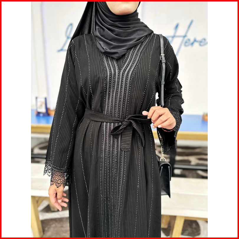Abaya Gamis Hitam Maxy Dress Fashion Muslim Busana Wanita Turkey Murah Dubai Embos Salur Swarosky Sauda