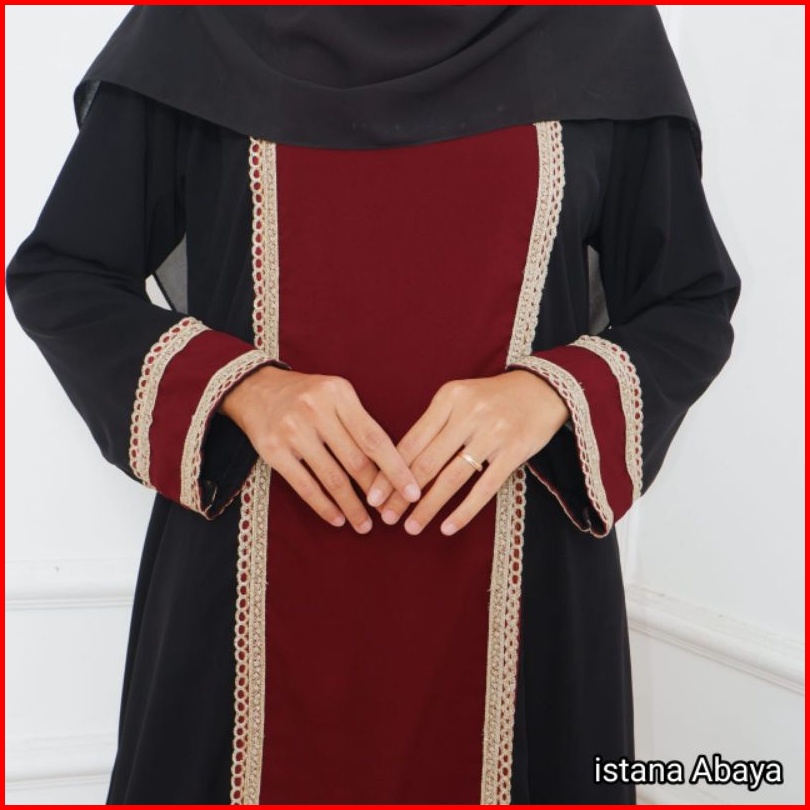 Satu Lagi Abaya Aplikasi Hitam Marron Dg Aksen Pita Rajut Elegan Terbaru Dari Istana Abaya