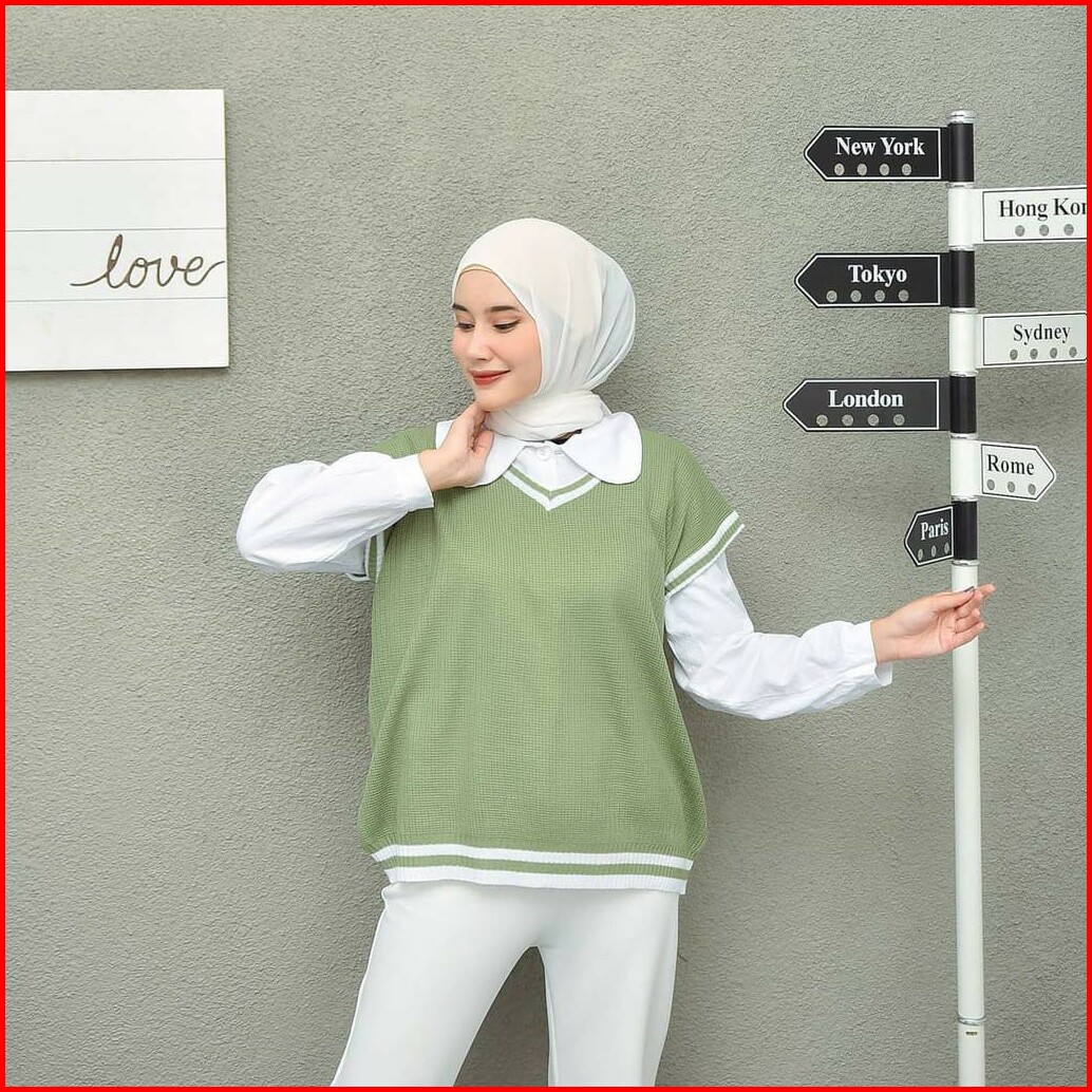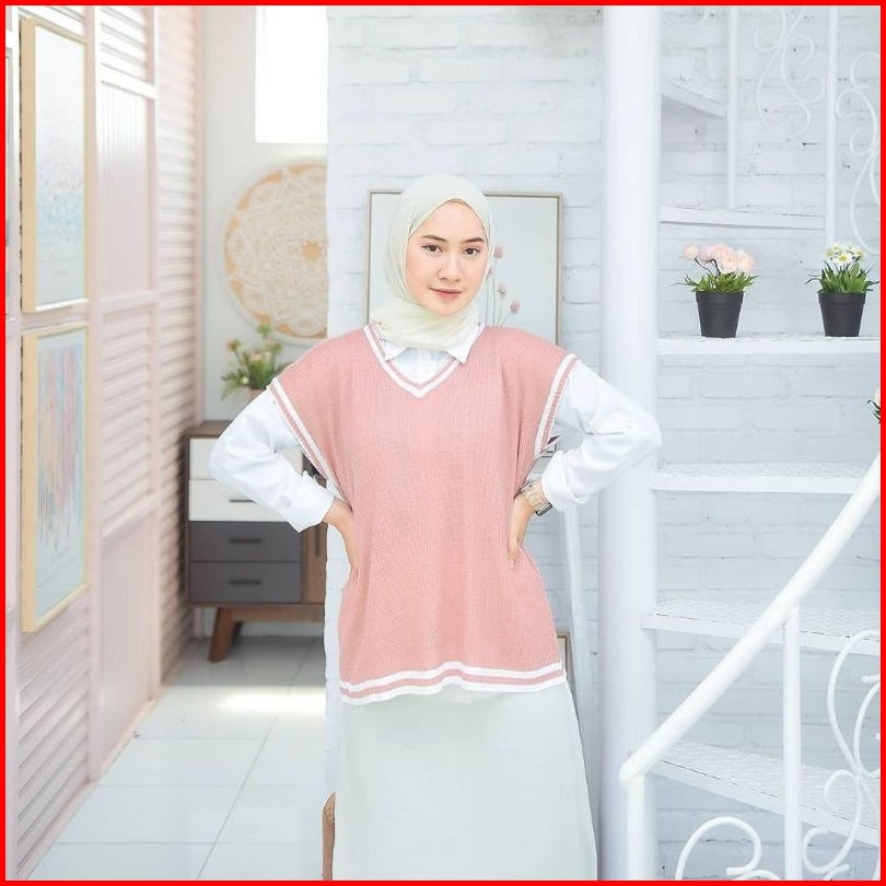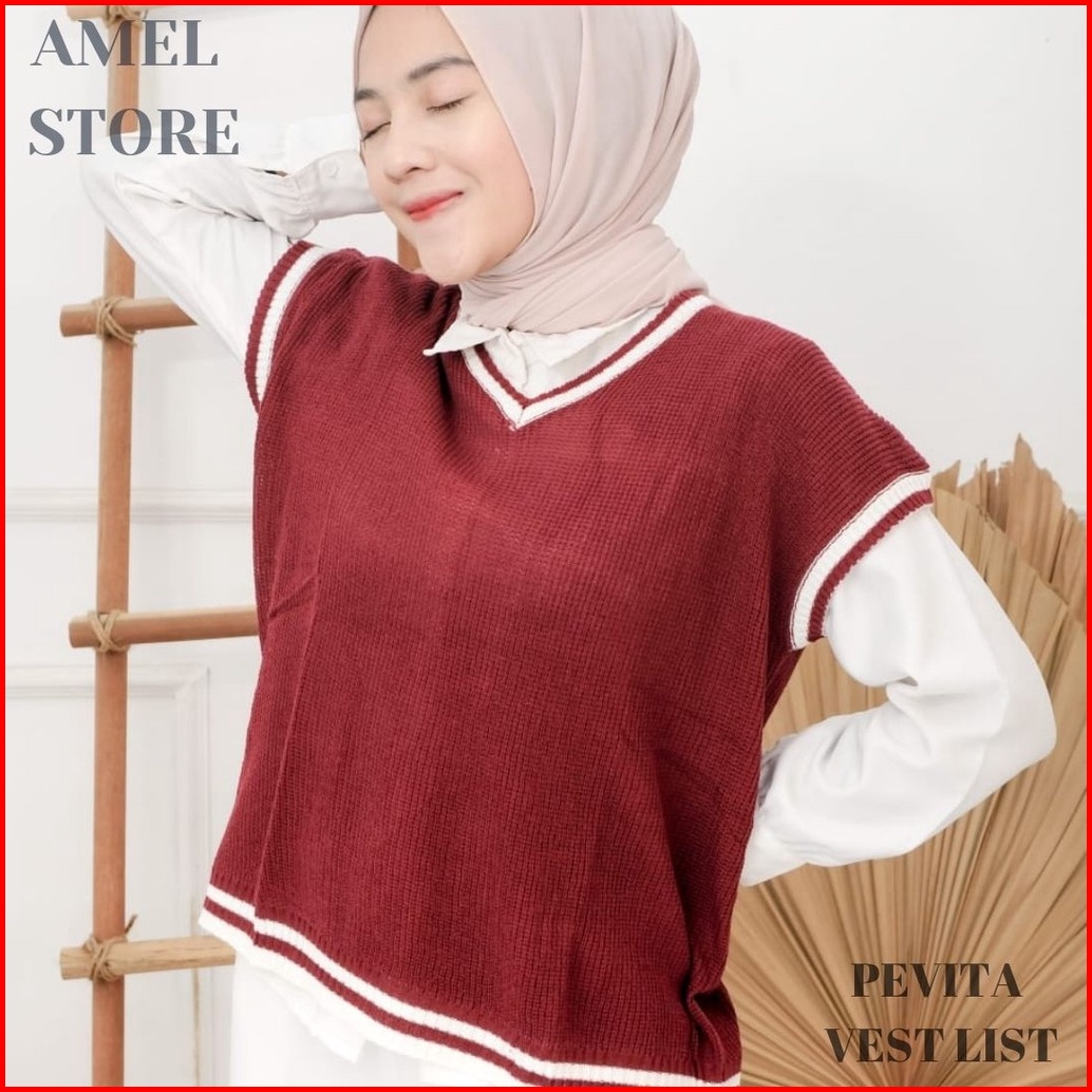 Pevita Vest Knit List Putih Vest Rajut Pevita Oversize Rompi Rajut Pevita Rompi Rajut Oversize