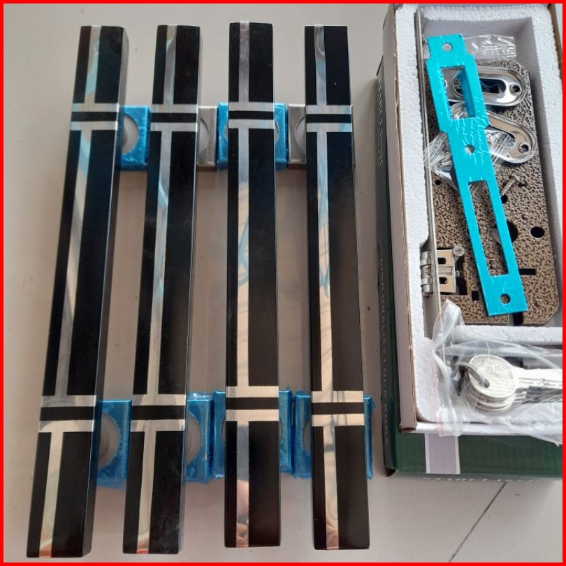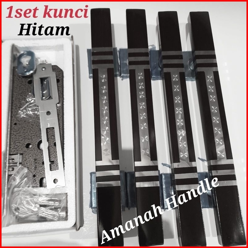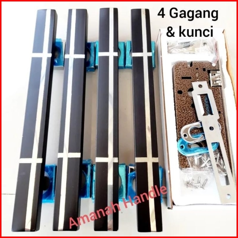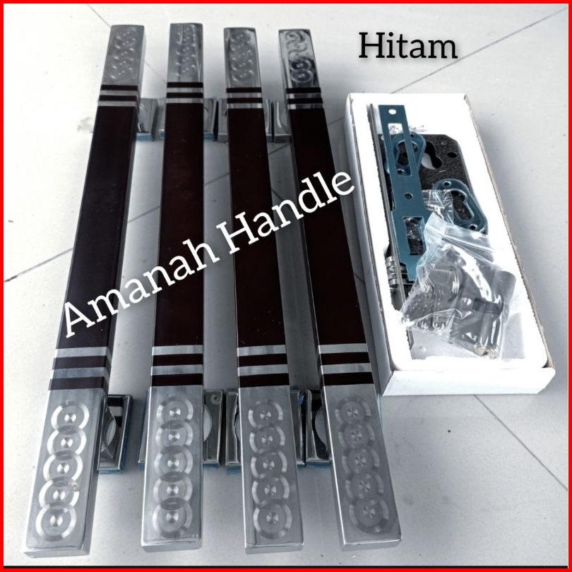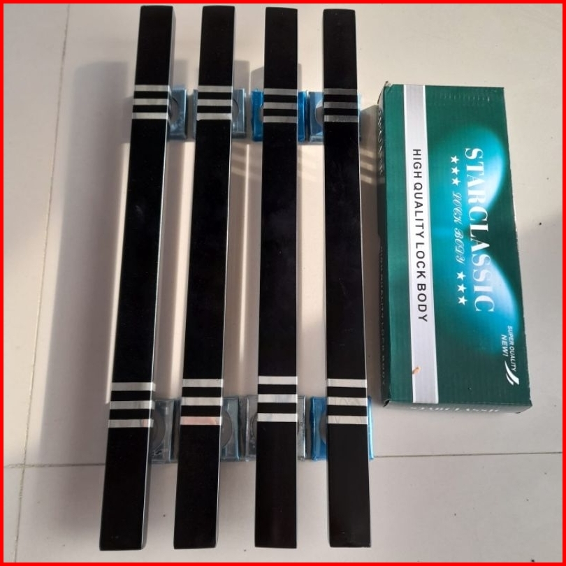 Fullset Lengkap Handle Gagang Pintu Rumah Stainless Hitam 45cm 33cm Gagang Tarikan Pintu Rumah