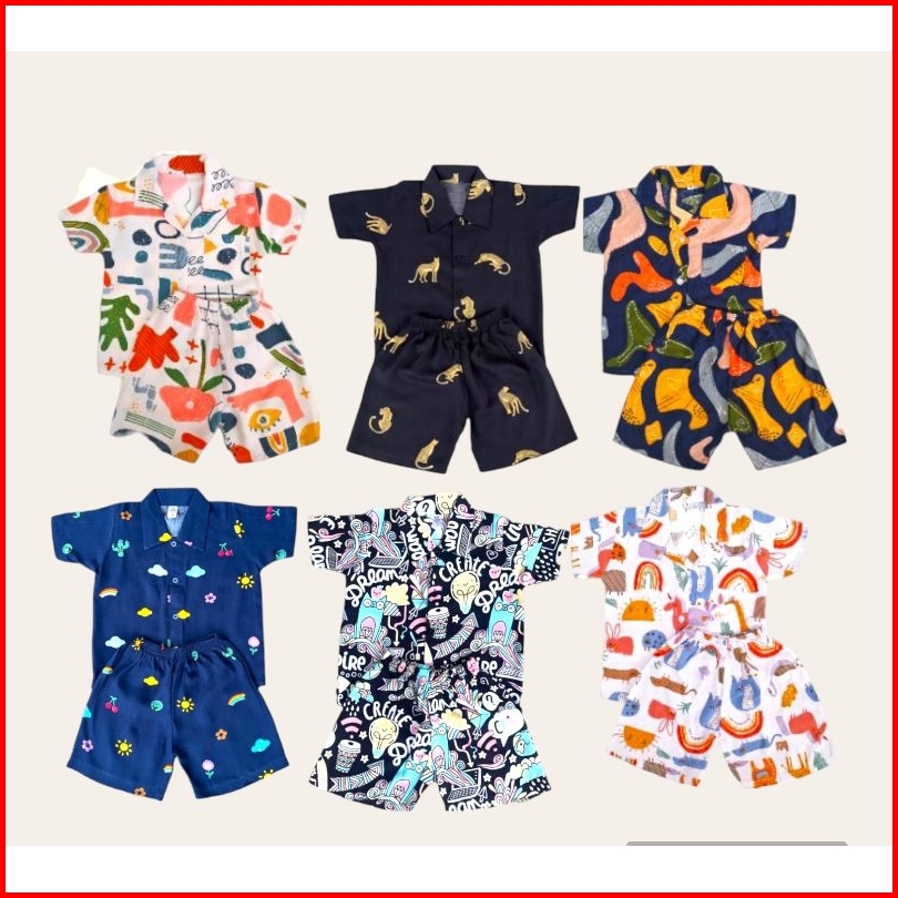 Pajamas Rayon Anak Set Rayon Kids 1-5th Piyama Anak Rayon Setelan Anak Rayon