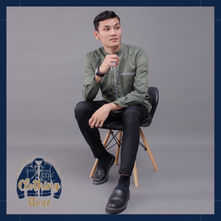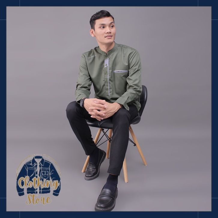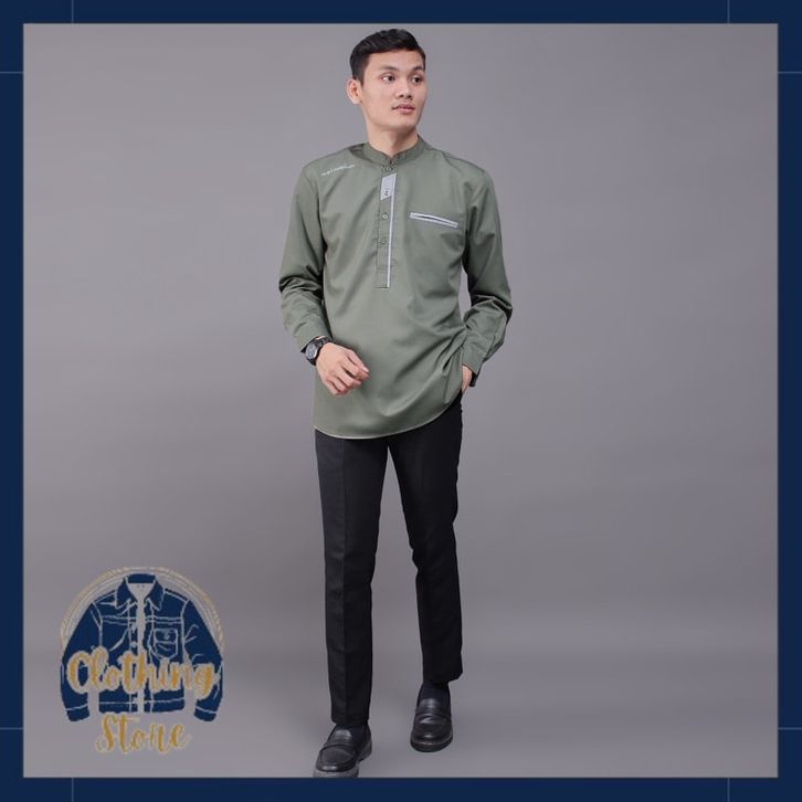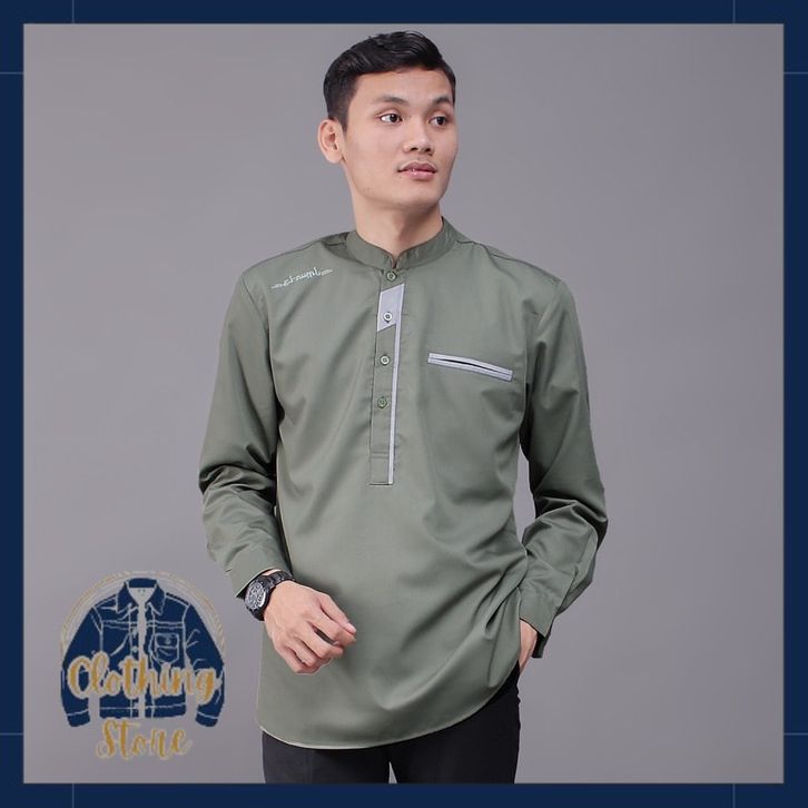 Kemeja Koko Pria Elrumi Lengan Panjang Motif Abizaar Warna Sage