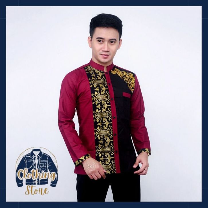 Baju Koko Bordil modern kombinasi Batik Lengan panjang Terbaru dan paling di Cari Terlaris