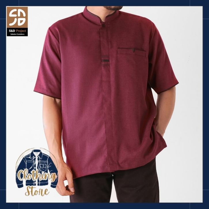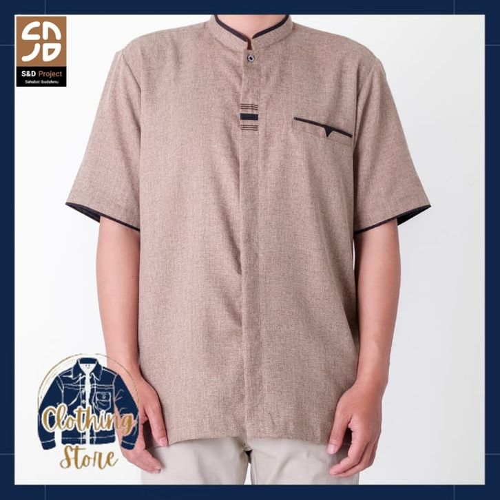 Baju Koko Katun Madinah Polos Lengan Pendek Ukuran M L XL XXL 3XL 4XL Warna Coklat