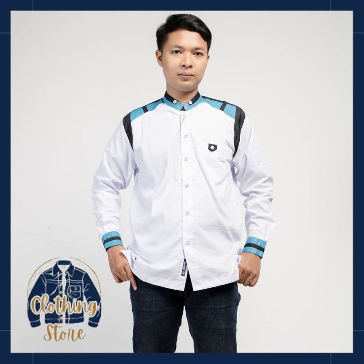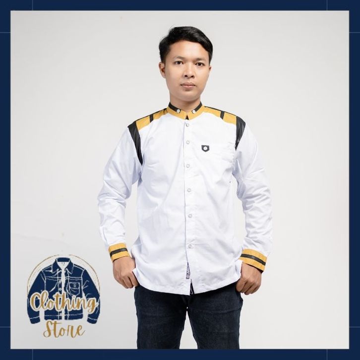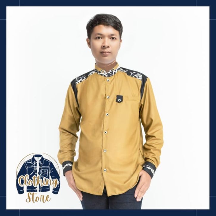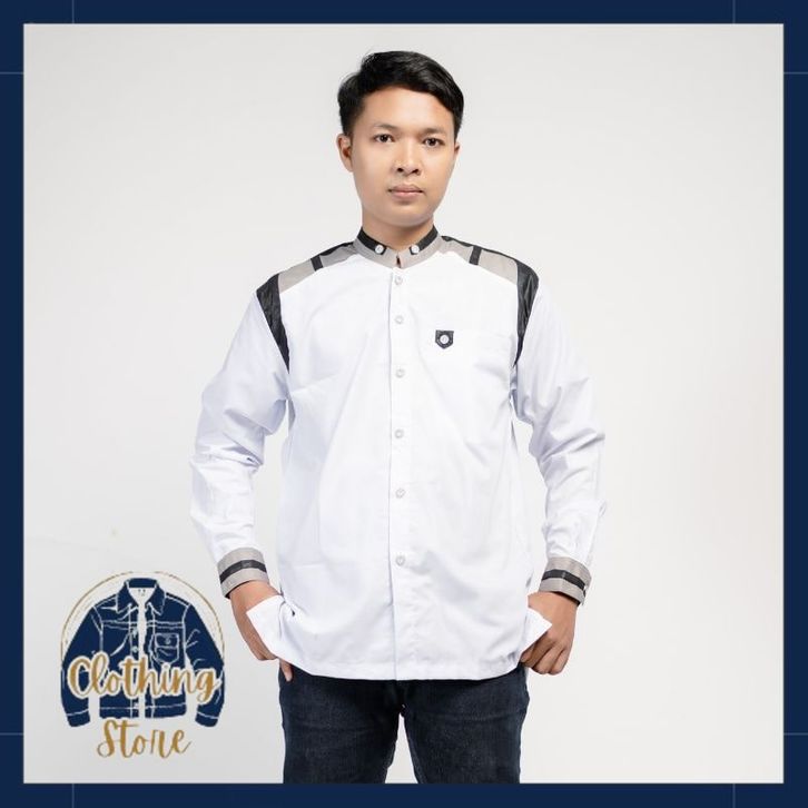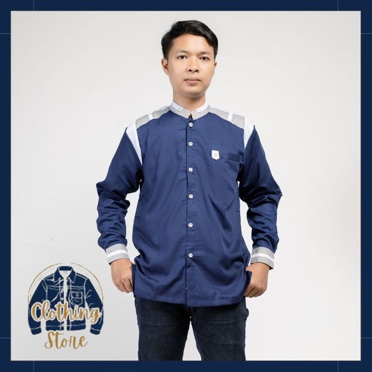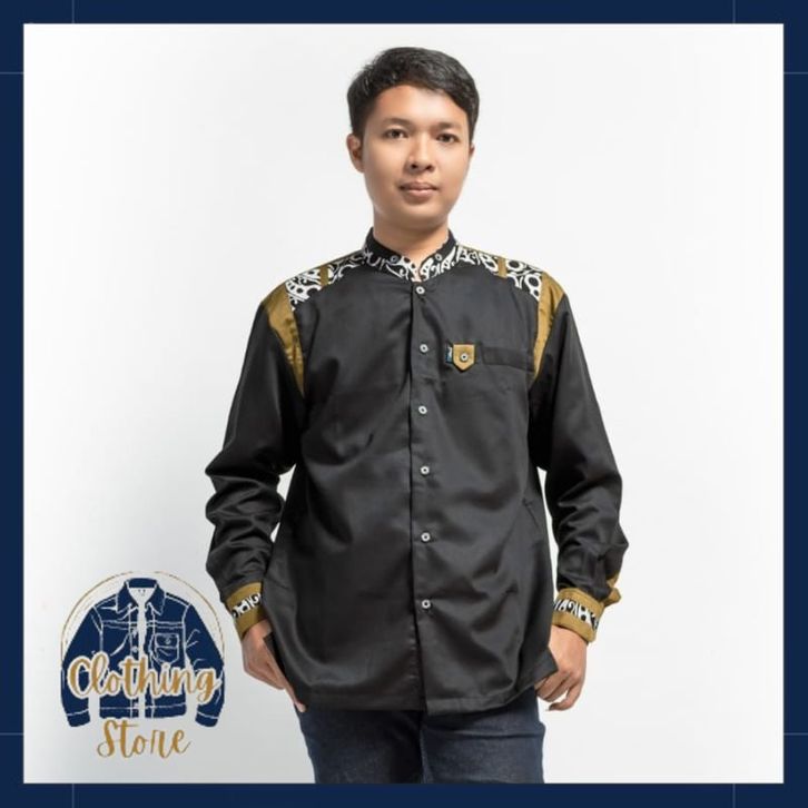 Baju Koko Hadroh Pria Lengan Panjang Motif Tanduk Rusa M L XL