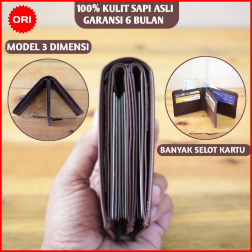 Dompet Kulit Pria Model 3d Bahan Kulit Asli 100 Original