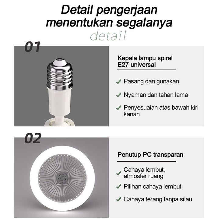 Lampu Kipas Angin Remote 3in1 36W E27 Plafon Fan Ceiling