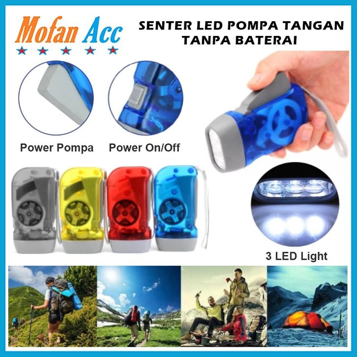 PROMO Senter Pompa Tangan Tanpa Baterai / Lampu Penerangan Darurat LED Untuk Camping Hiking Memancing / Hand Press Emerg