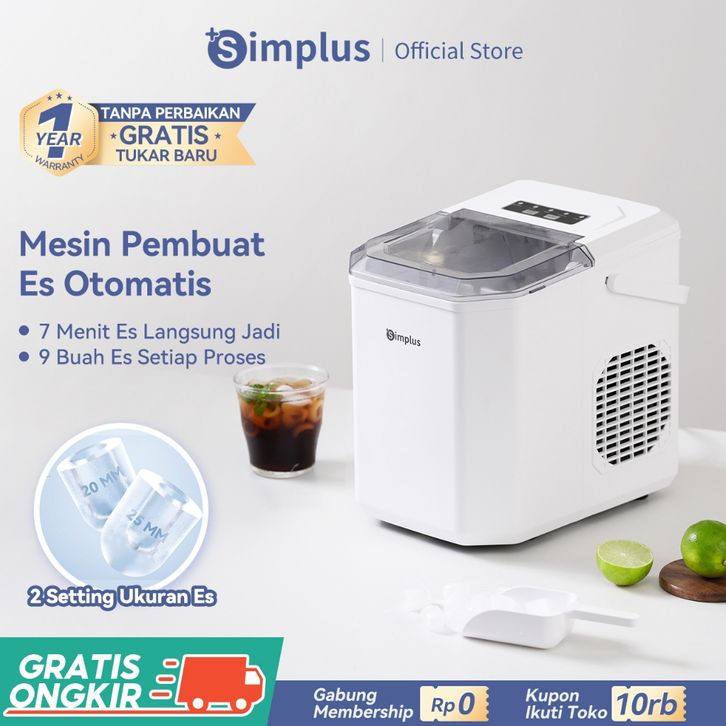 Simplus Mesin Pembuat Es Otomatis 1.3L Ice Maker Machine Automatic Daya Rendah Rumah Tangga Minimalis