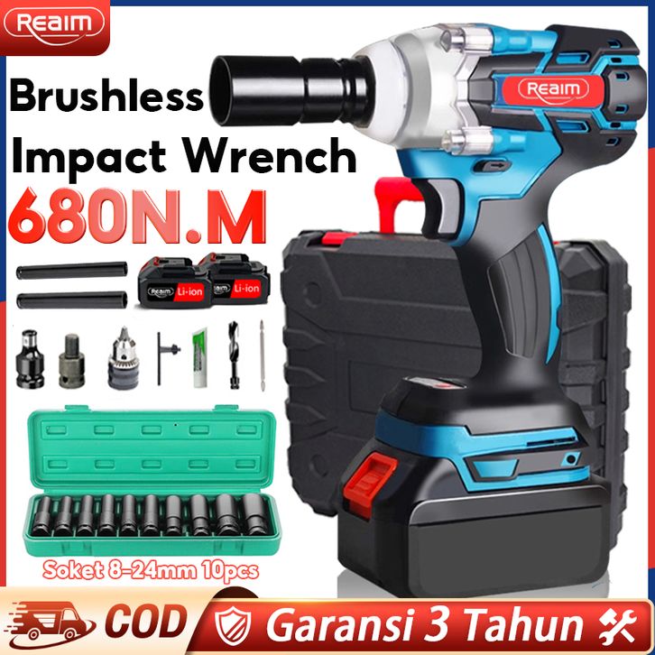 Impact wrench Cordless 388V 680NM Brushless bor impact baterai mesin impact buka baut Cordless Electric Wrench Rechargea