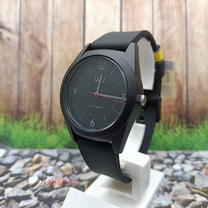 Q&Q QQ Analog Jam Tangan Pria Karet Hitam VS22J015Y Original