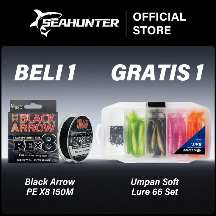 Senar Pancing (150 Meter)+ Gratis Bonus=Umpan Soft Lure 66Pcs (1 Set), Black Arrow