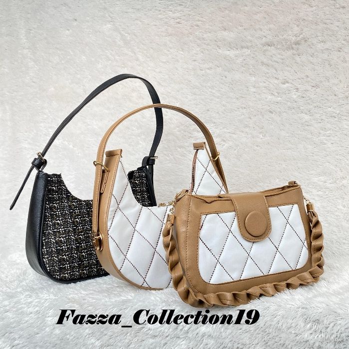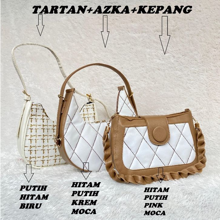 PAKET BUNDLING 3 PCS TAS SELEMPANG WANITA TARTAN BORDIR KEPANG AZKA