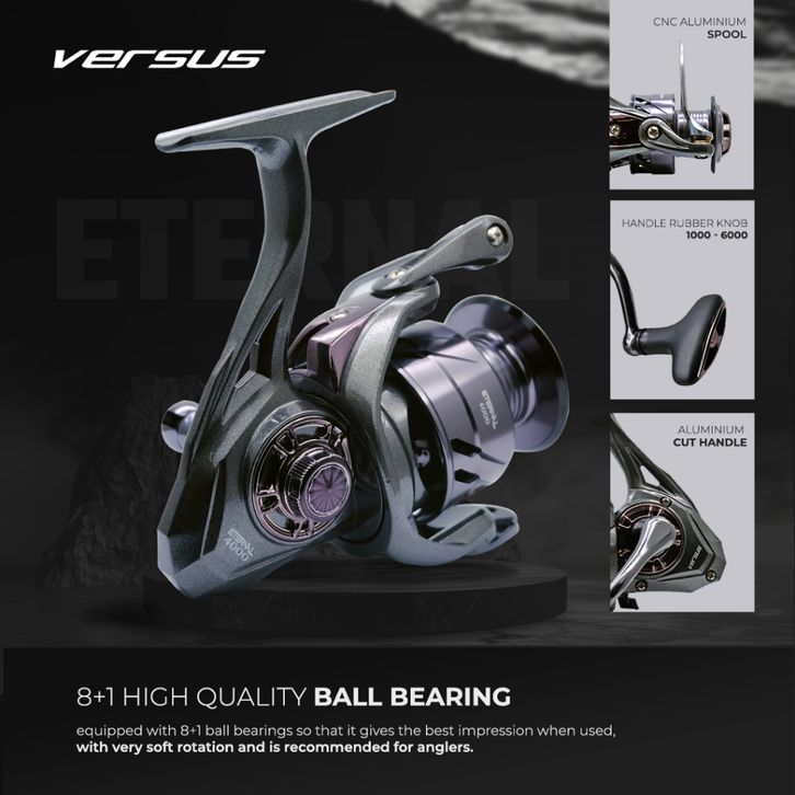 Reel Pancing VERSUS ETERNAL – 8+1 Bearing, Power Handle, Drag Kuat 18Kg, Spool CNC Aluminium