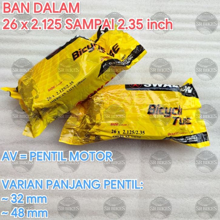Ban Dalam 26 x 2.125 / 2.35 Sepeda MTB GUNUNG. AV PENTIL MOTOR. SWALLOW