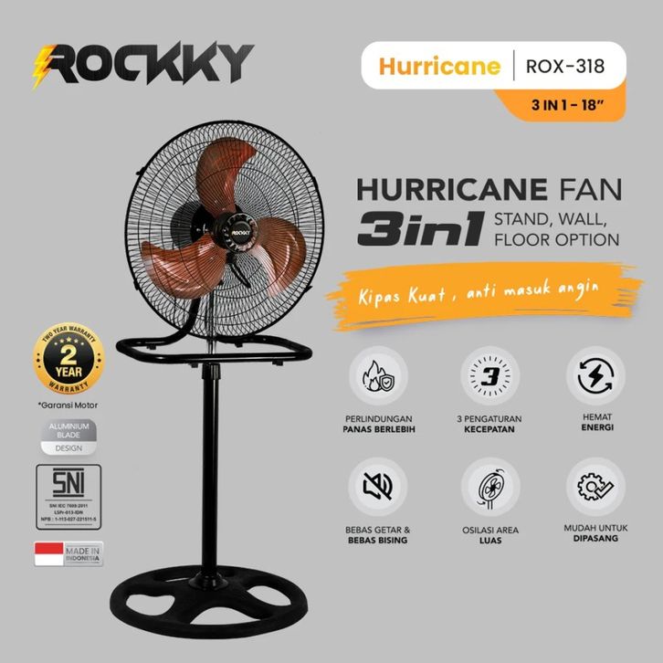 Rockky ROX318 Hurricane Fan 3 in 1 Kipas Angin Industrial ORIGINAL ROCKKY