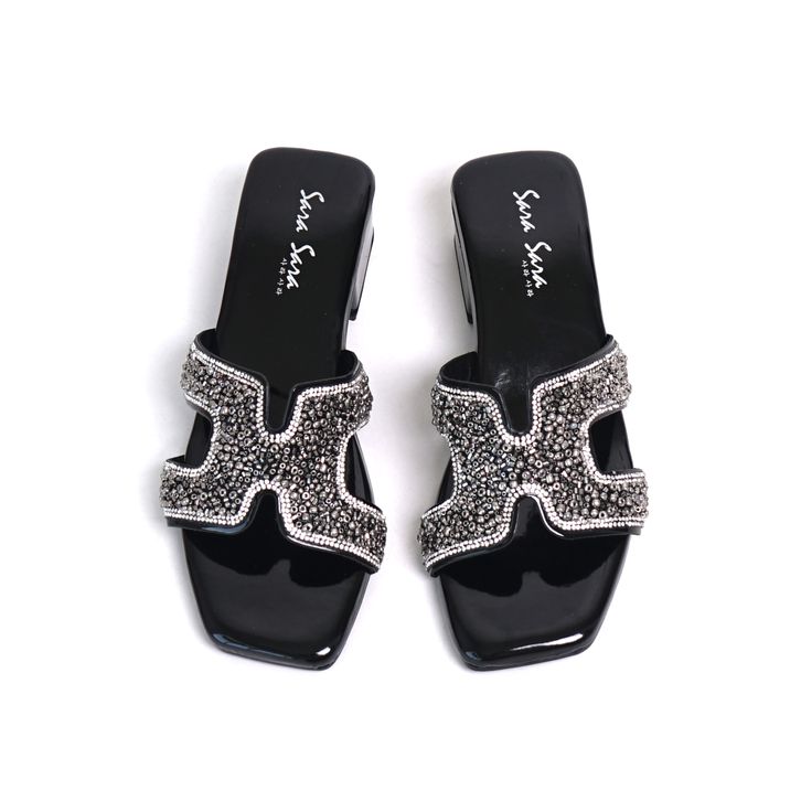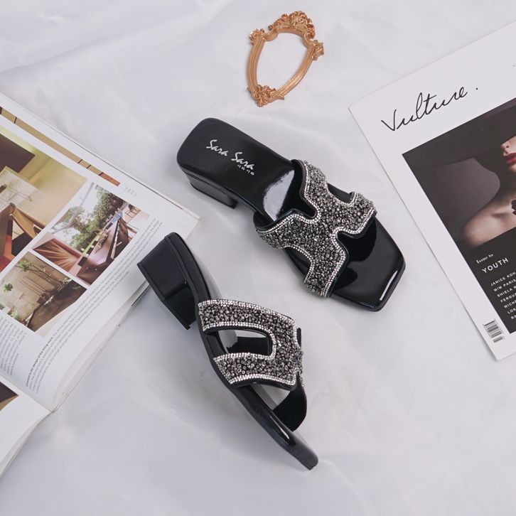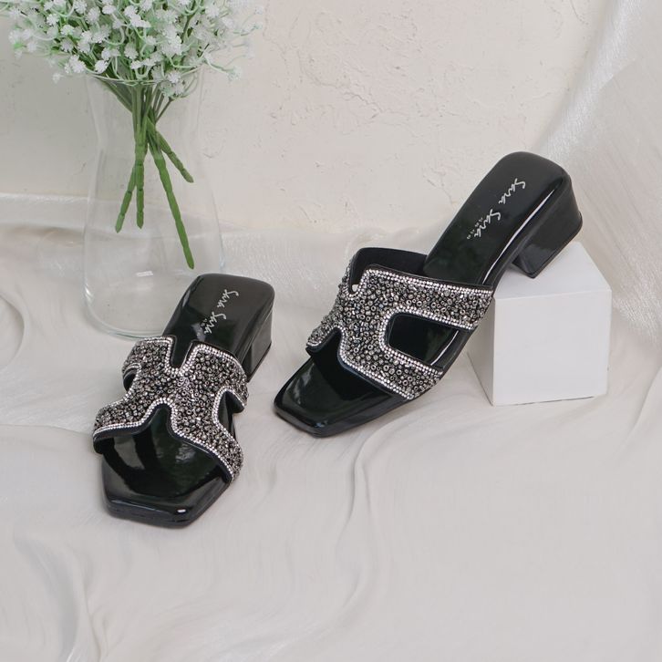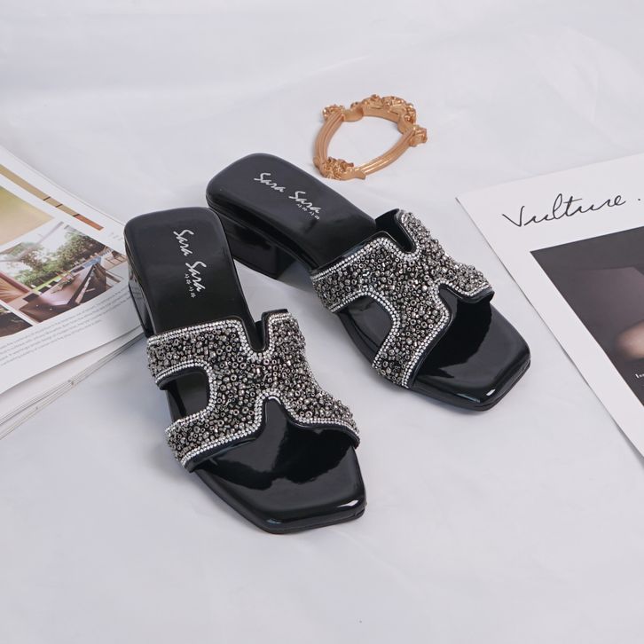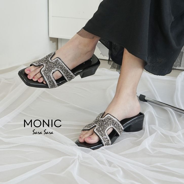 Sara Sara Monic Sandal Heels Wanita Kasual Sendal Slop Cewek Hak Chunky 4CM Kekinian