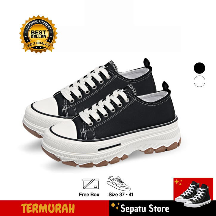 Free Box Sepatu Sneakers Low Run Hike Olahraga Wanita Kanvas Size 36 - 41
