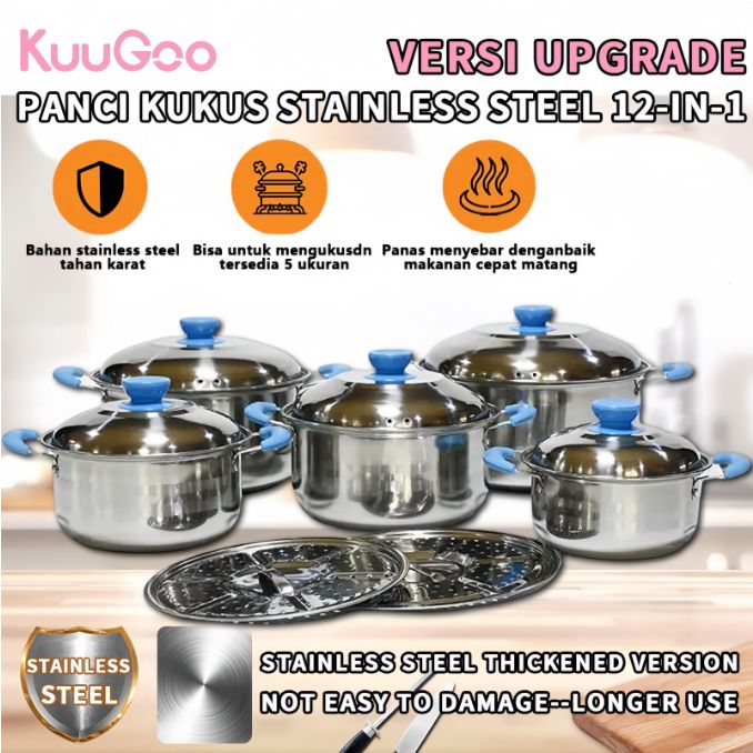 PANCI SET ANTI LENGKET / PANCI KUKUS / PANCI 1 SET LENGKAP 12IN1 STAINLESS ISI 5 PCS + 2PCS TEBAL PREMIUM