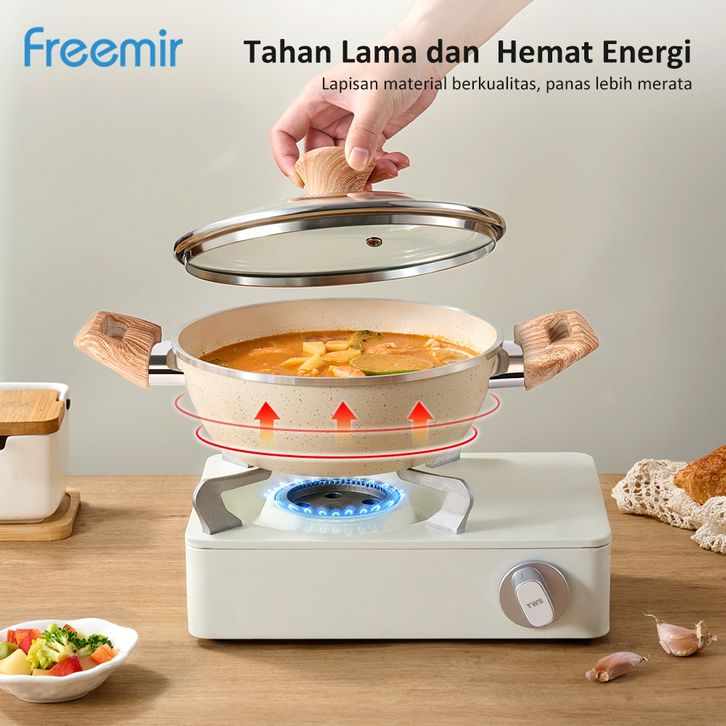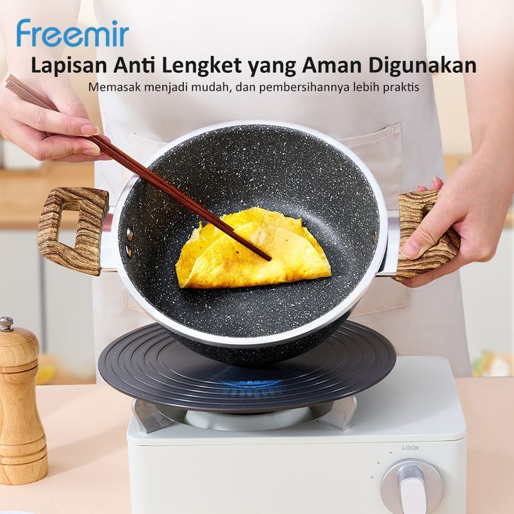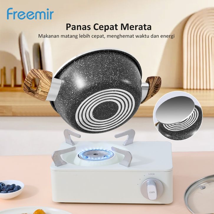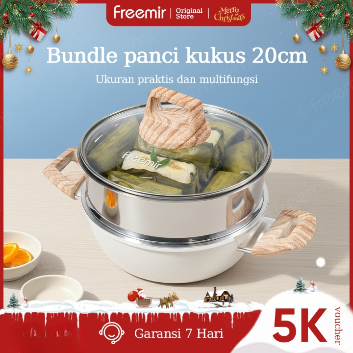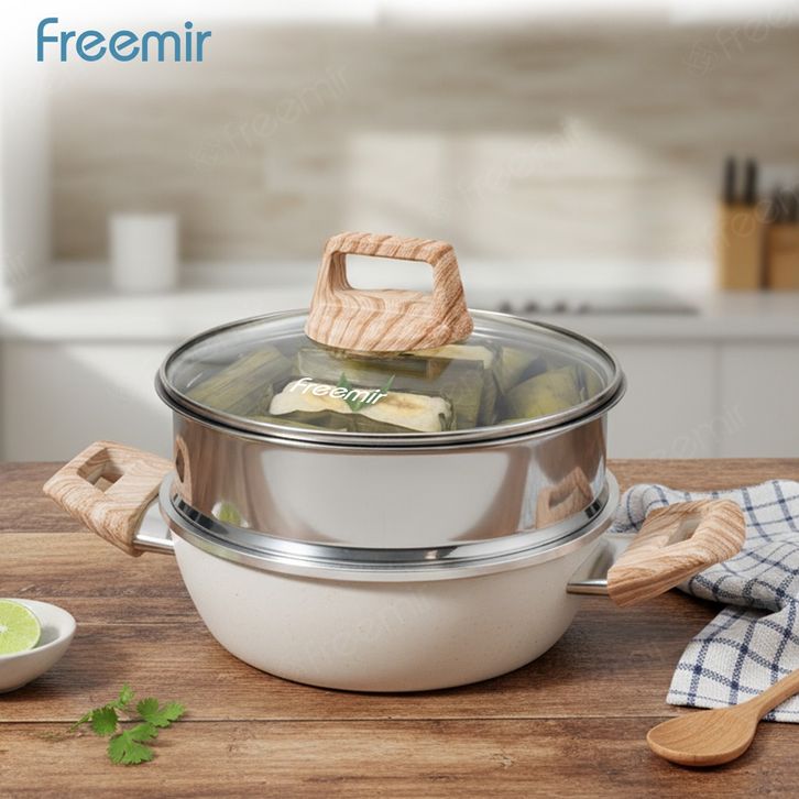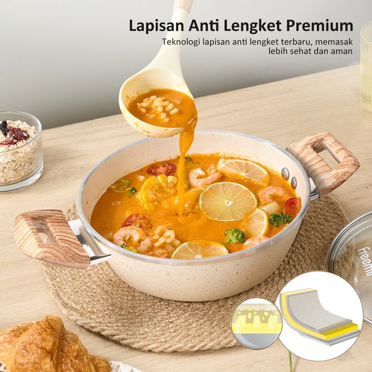Wajan Anti Lengket / Wajan Panci 20 Cm + Kukusan Anti Lengket Tutup Kaca Non Stick Pan Beige Black