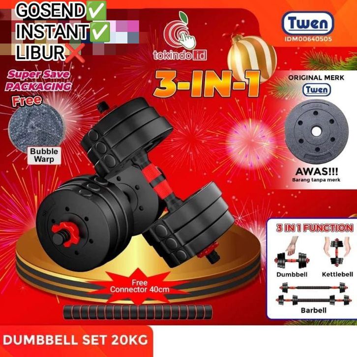 DUMBBELL ADJUSTABLE SET 20KG TWEN BARBEL DUMBEL DUMBELL DUMBLE ANGKAT BEBAN ALAT FITNESS GYM 20 KG | 20 KILO