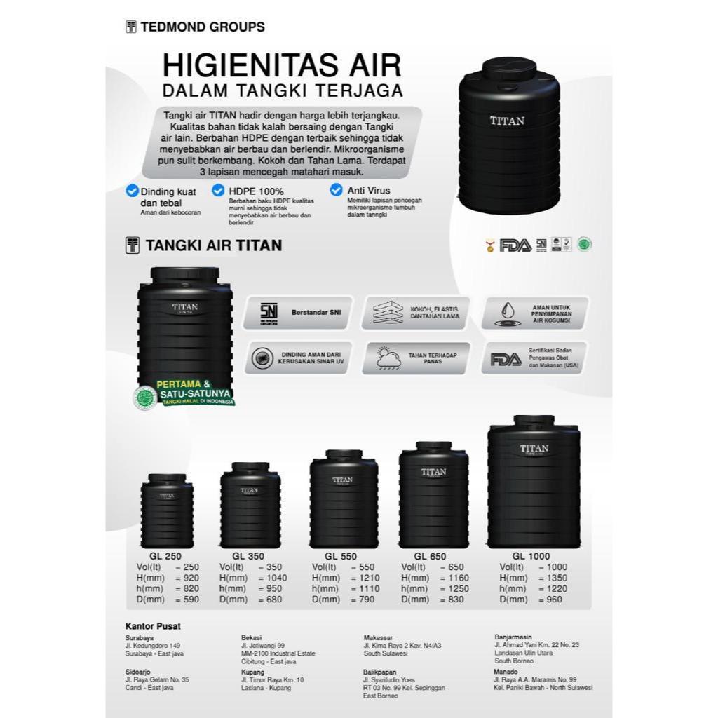 Tandon Toren Tangki Air Titan 500 550 Liter Harga Murah Tedmond Grand Anti Lumut Garansi 3 Bulan