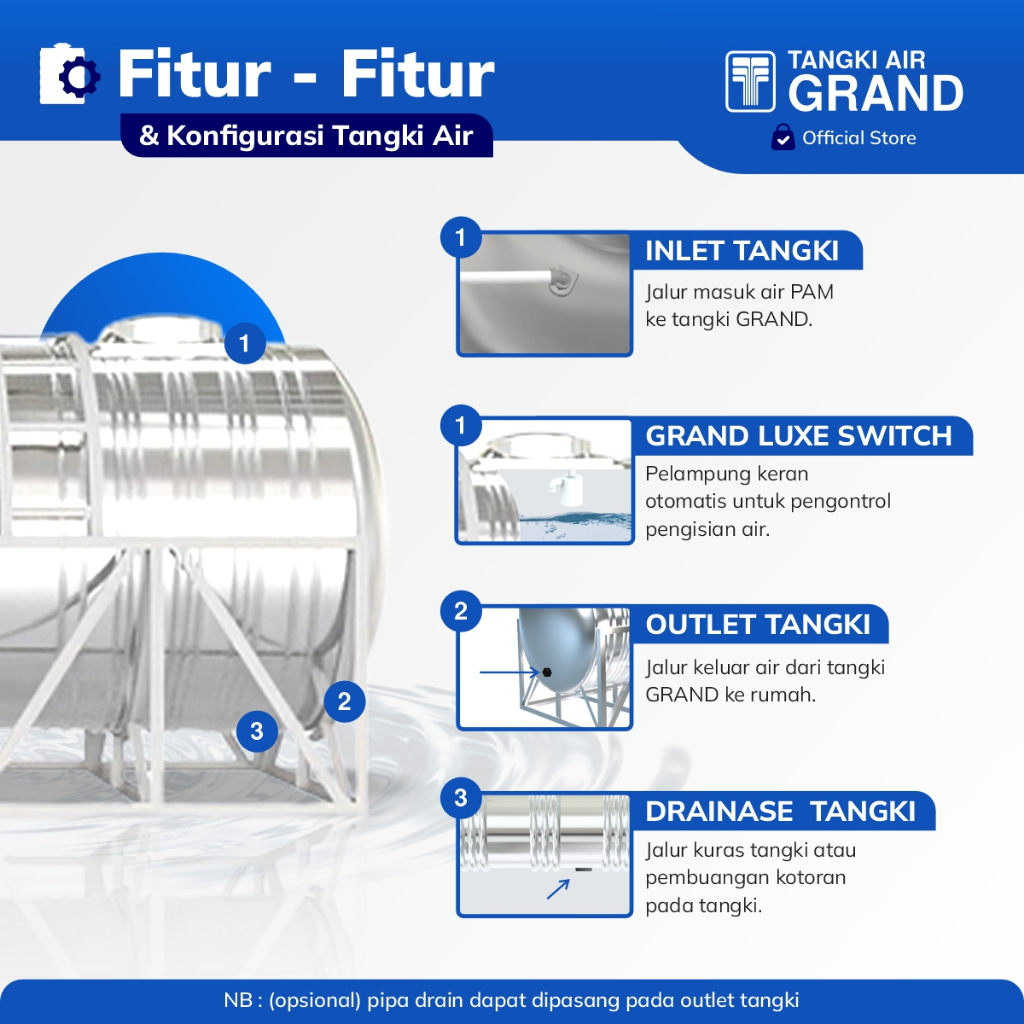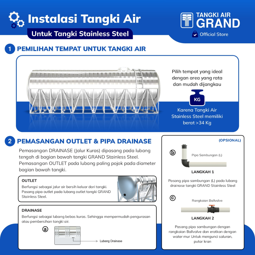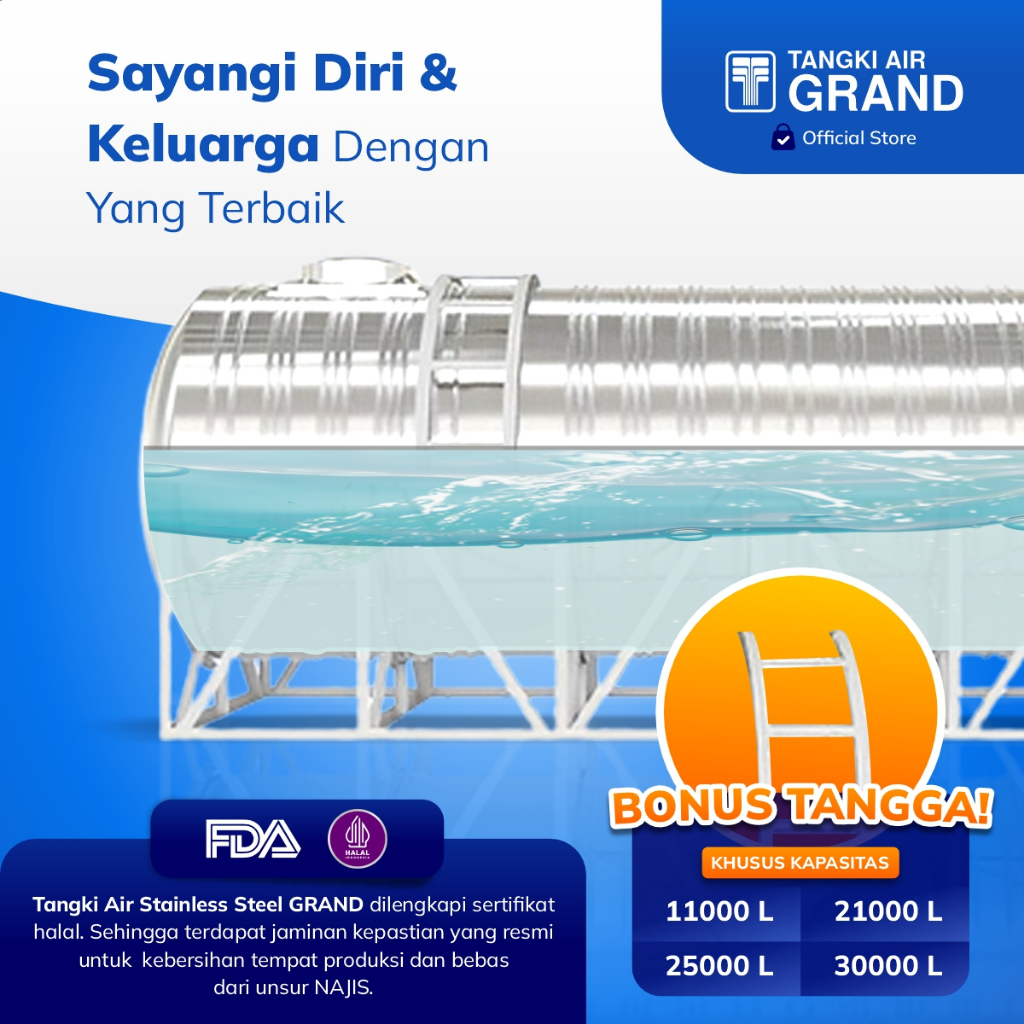 Toren Tangki Air Tandon Stainless Horizontal Grand TSH 1500 Anti Lumut Halal Garansi 12 Tahun