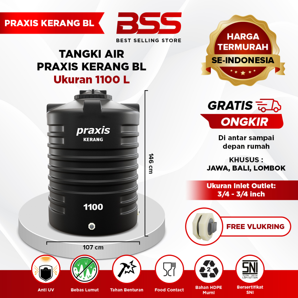 Tandon Toren Tangki Air Praxis Kerang 1100 550 350 Liter Anti Lumut Bahan Kuat Lentur Gratis Ongkir