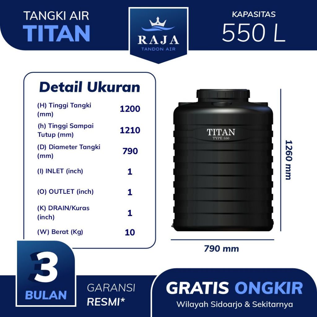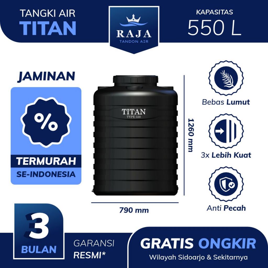 Tangki Toren Tandon air Titan Blow 550 Liter Tidak Berbau Higienis | Free Ongkir