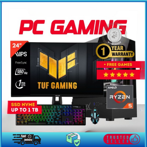 PC Gaming Fullset AMD Ryzen 5 5600GT SSD 1 TERA RAM 64GB LED 24 inc Keyboard Mouse GAMING