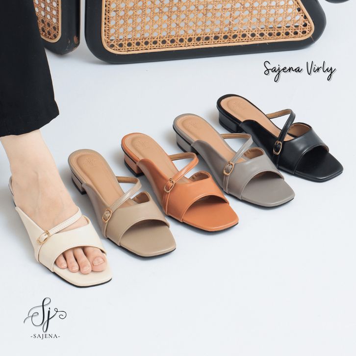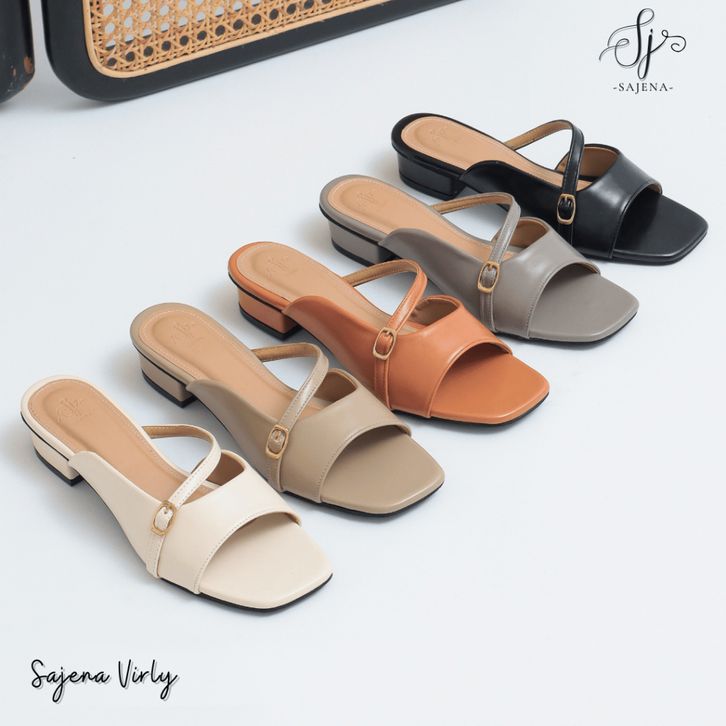 Sajena Virly Sandal Heels Rendah Casual Semi Formal Daily Work Wanita Hak 3 Cm Sandal Wanita Slop High Heels Sedang