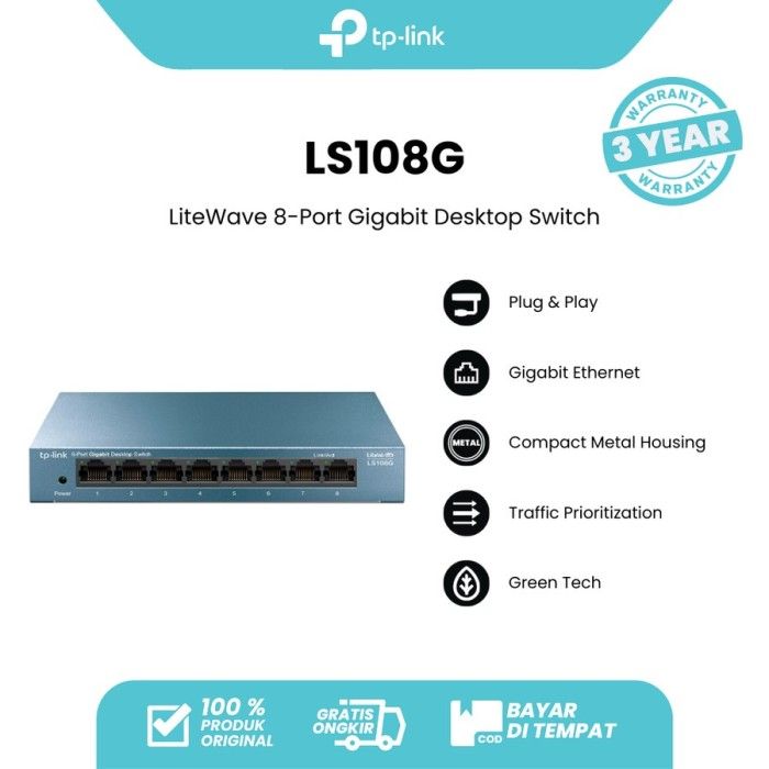 TP-LINK LS108G 8-PORT 10/100/1000MBPS DESKTOP SWITCH