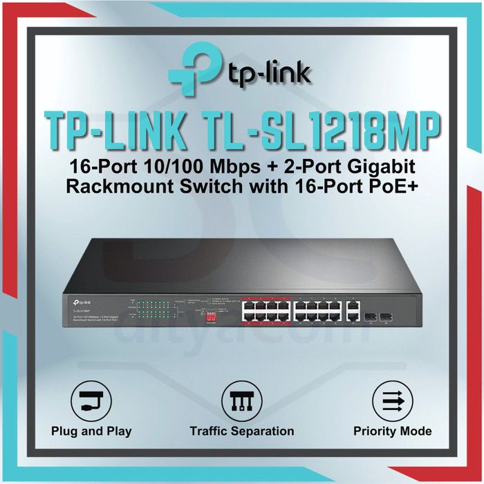 TP-LINK TL-SL1218MP 16 PORT 10/100 MBPS + 2 PORT GIGABIT SWITCH POE+